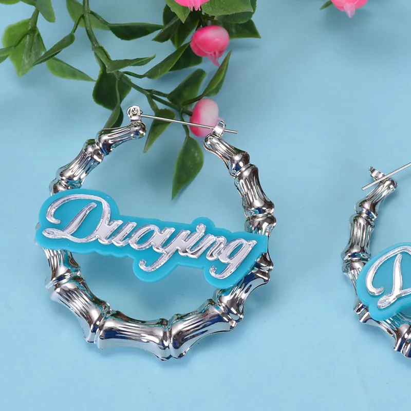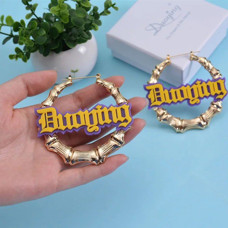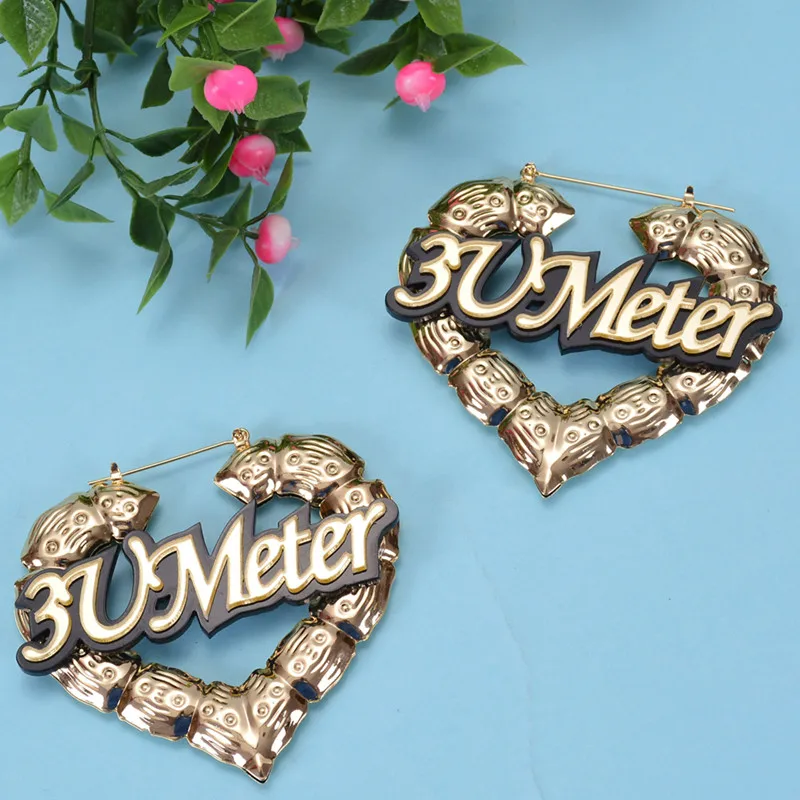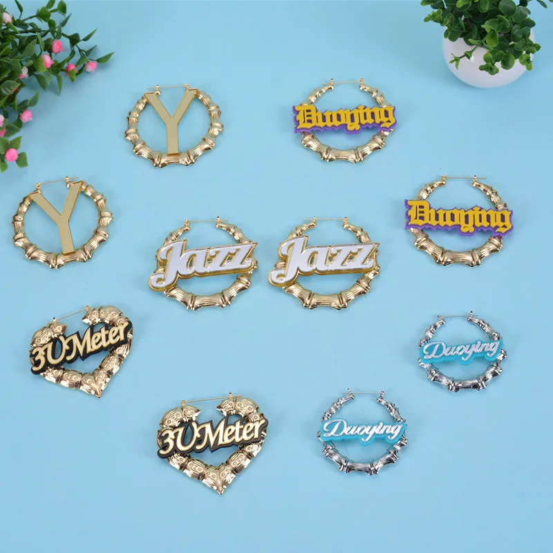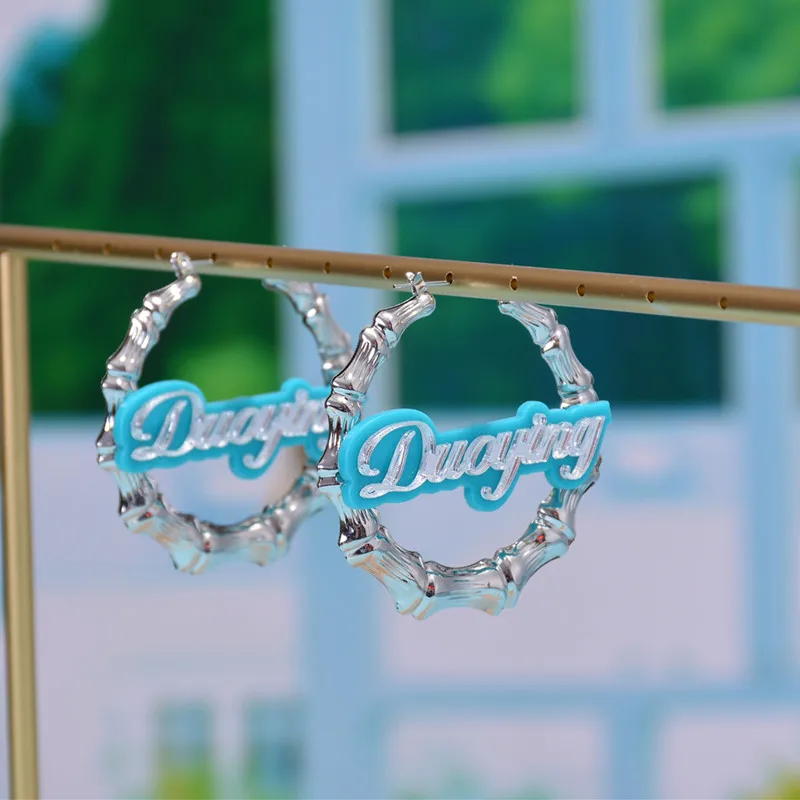 Duoying хип-хоп бамбуковый акриловый стиль индивидуальные серьги сексуальный Бамбук Серьги-кольца сердце режим Настройка имя серьги заявление