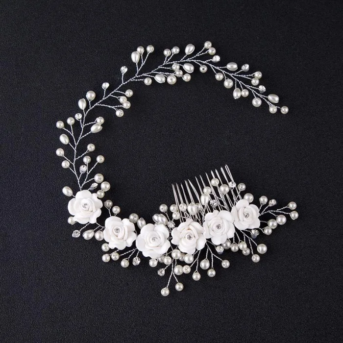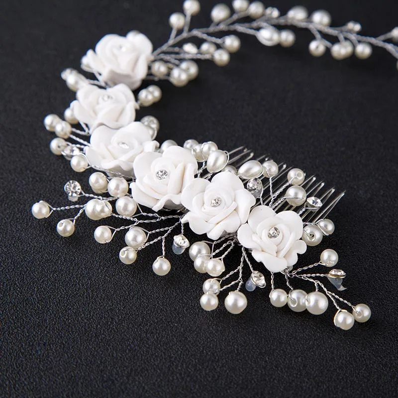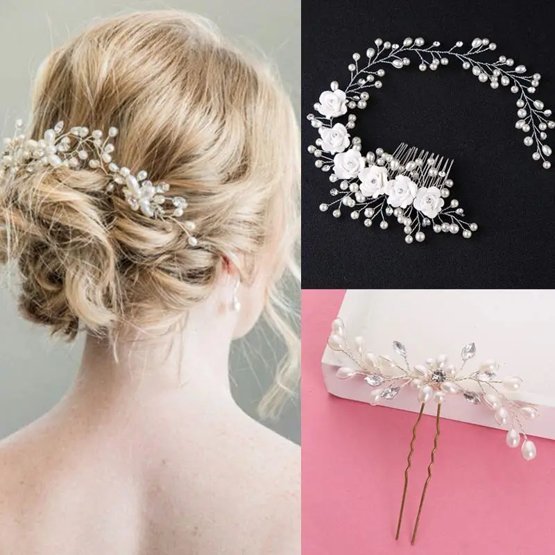 Свадебные аксессуары для волос для невесты, расческа для волос с искусственным жемчугом и цветами из кристаллов/заколка для женщин и девушек H9