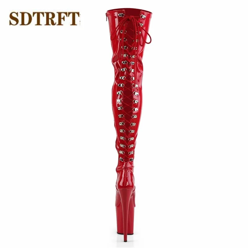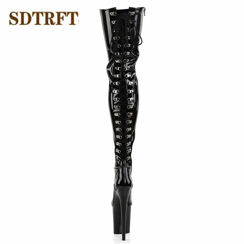 Женские сапоги выше колена SDTRFT, на тонком высоком каблуке 20 см, на платформе, женские туфли-лодочки для косплея, вечерние туфли на шнуровке сбоку