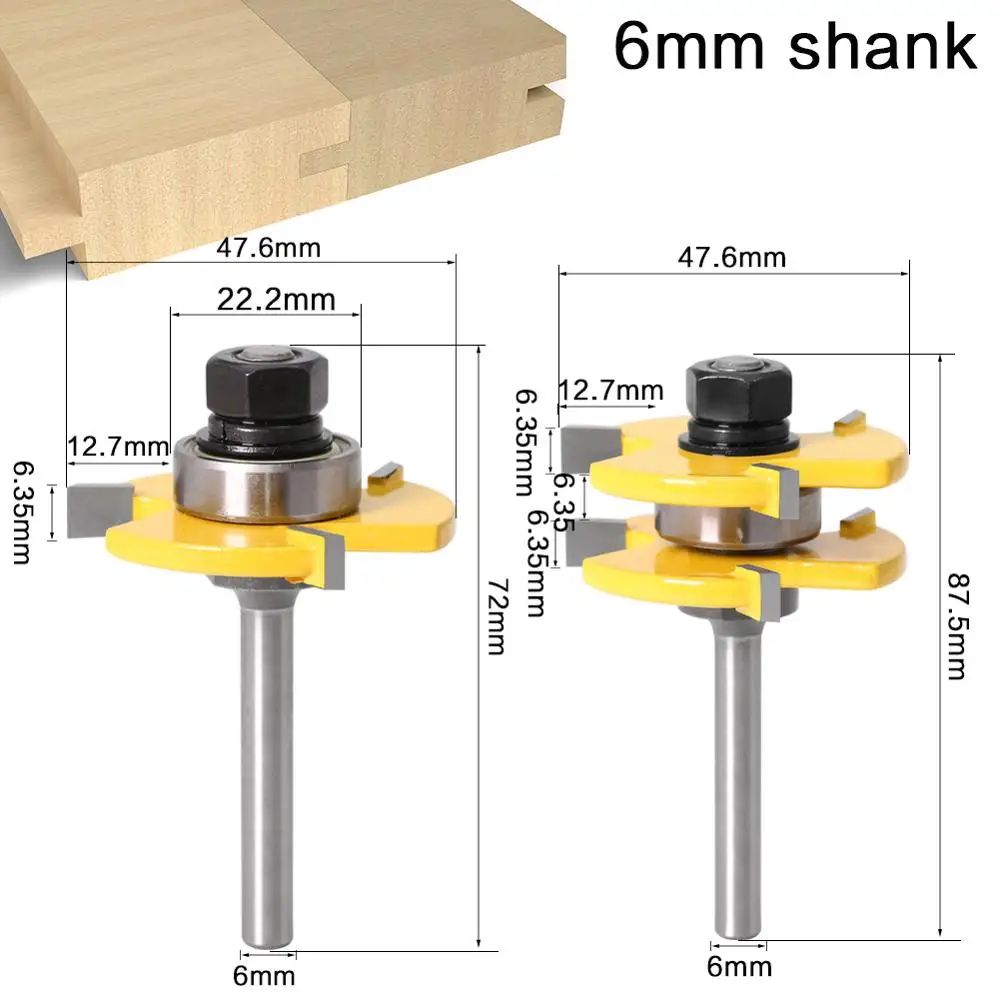 Набор фрез для шпунтового и пазового соединения, 2 шт., 6 мм, 14 дюйма, 34 дюйма
