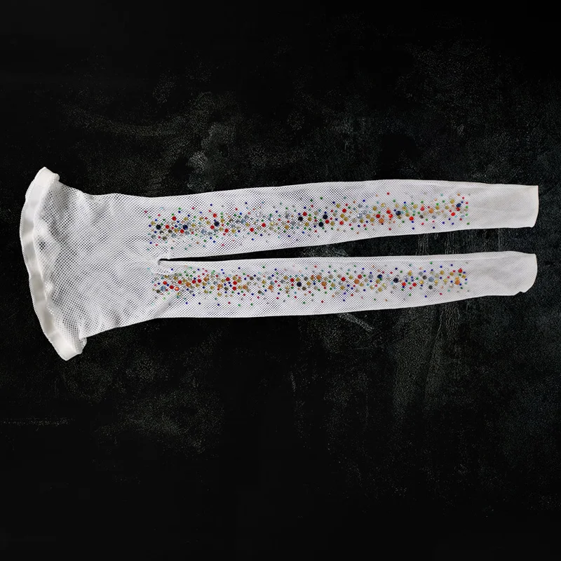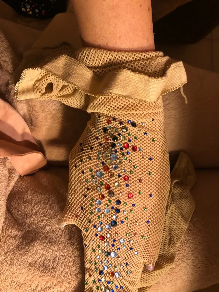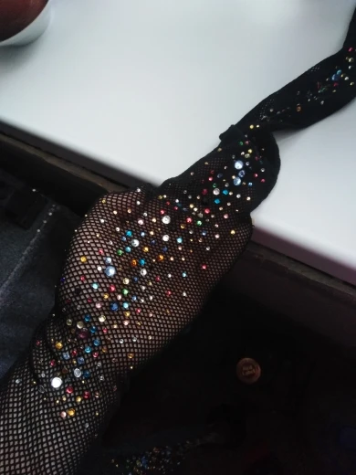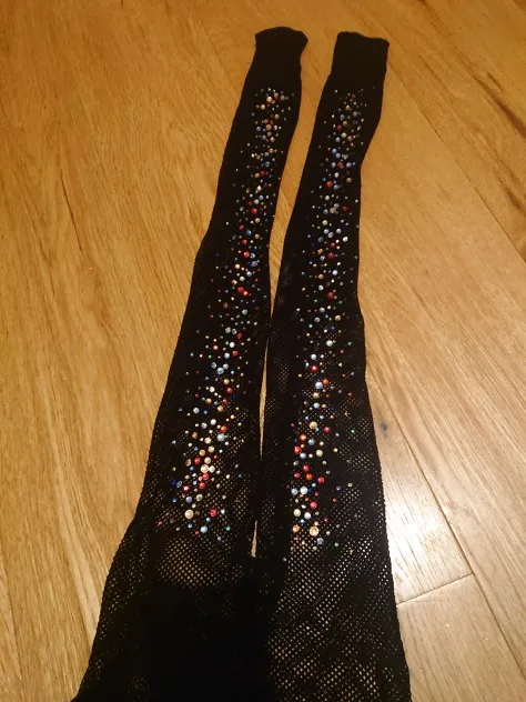 Колготки очень красиво смотрятся на ногах! Качество хорошее. Стразиков много. Держатся крепко. Доставка на Сахалин 6 недель.