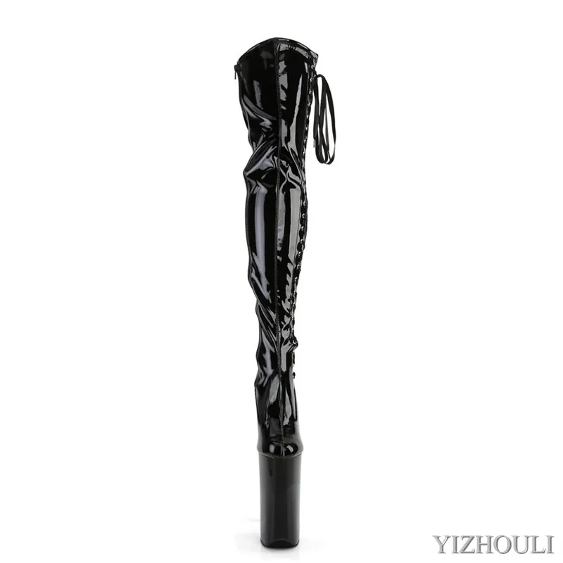 Сапоги на высоком каблуке 23 см; Пикантные женские сапоги-гладиаторы до колена и бедра для танцев на шесте; Модель для прогулок