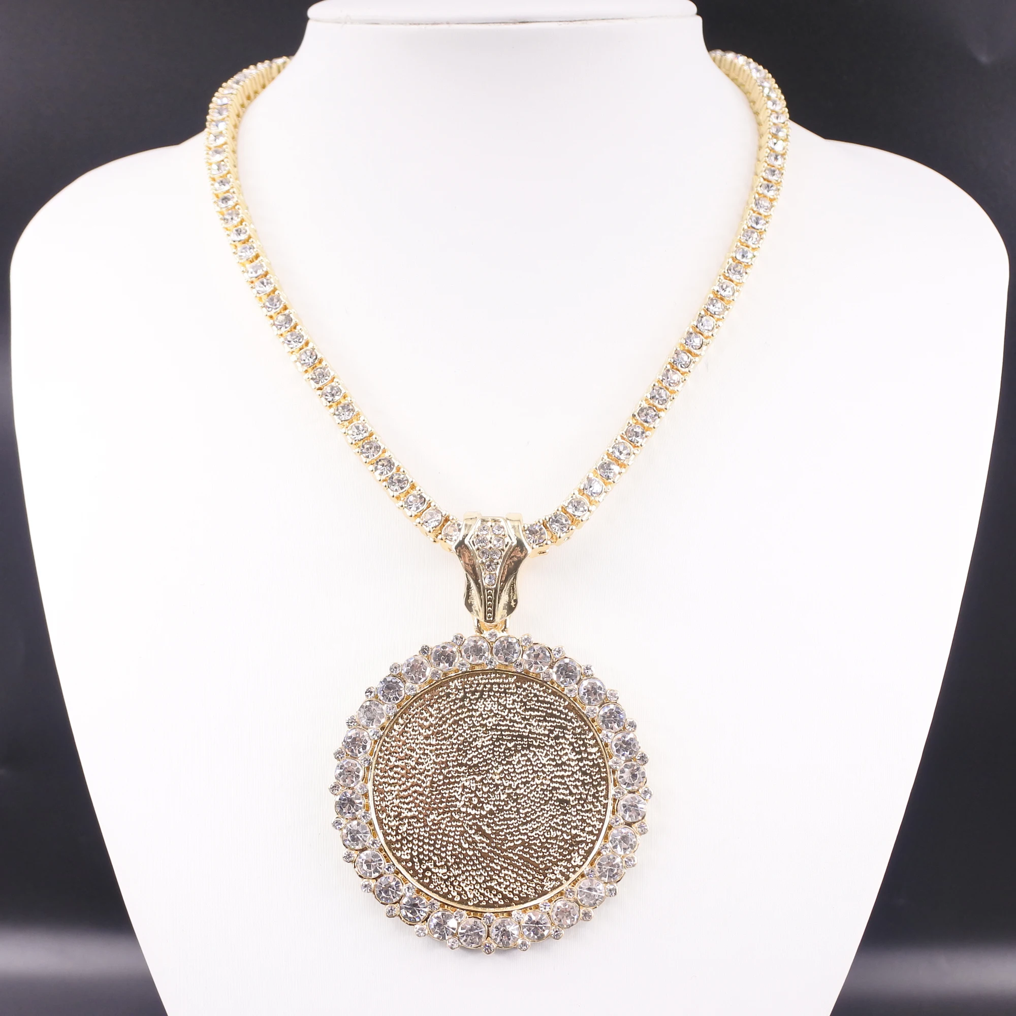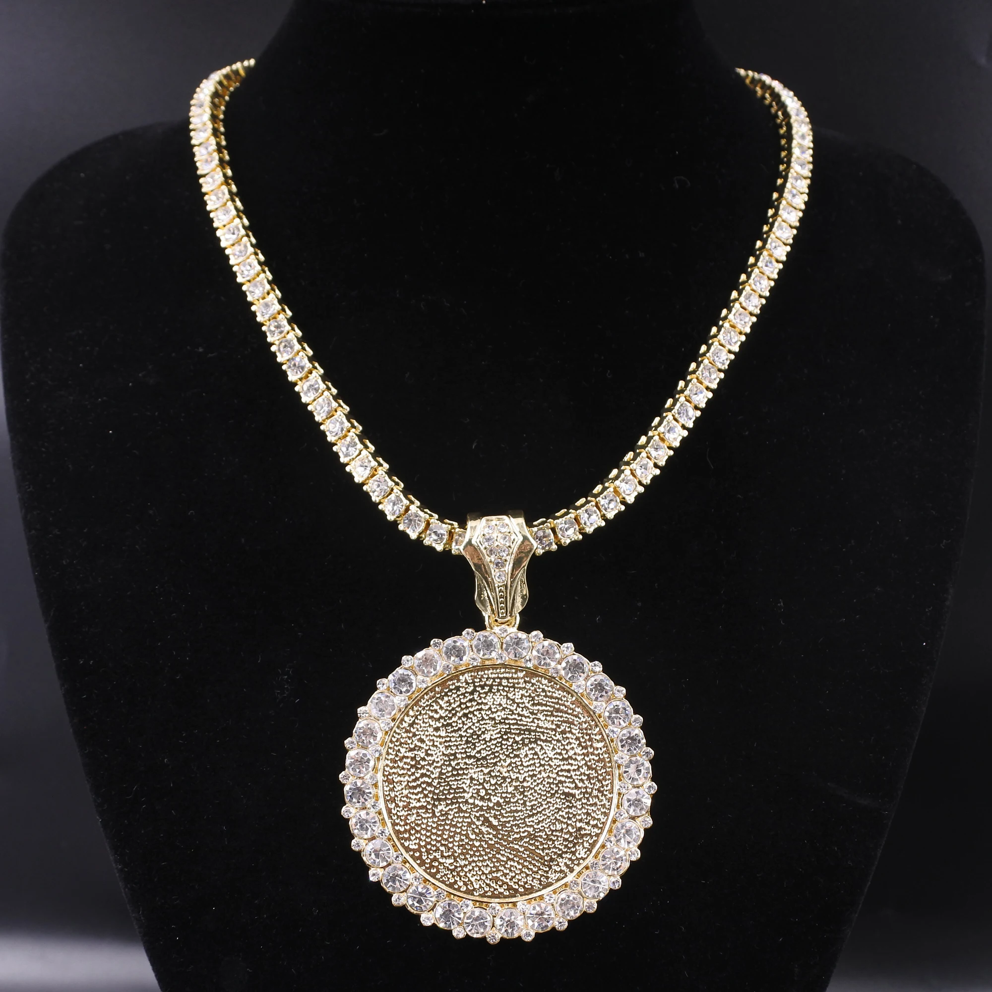 Ожерелье с подвеской в виде рамы памяти для мужчин и женщин, Ювелирное Украшение в стиле хип-хоп 1 ряда, теннисная цепь в стиле рэпера со стразами круглой формы, цвет золото и серебро
