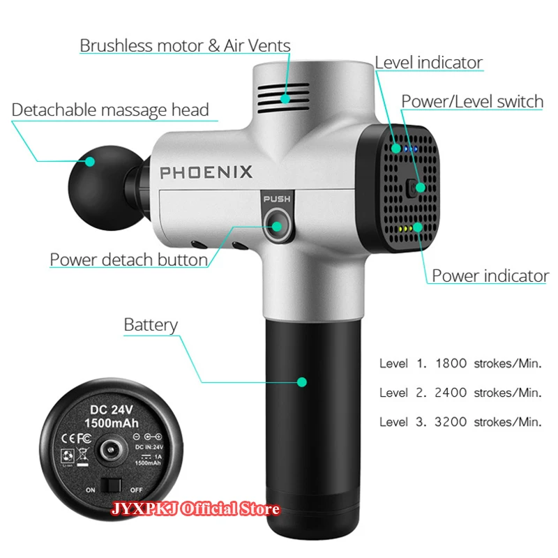 О товаре【Многофункциональный массажный пистолет: Феникс массажный пистолет используется для облегчения мышечной жесткости и болезненности, способствует циркуляции крови и лимфы. Для спортсменов, он может ускорить восстановление после тренировки и физических травм. Для личного или самостоятельного использования это пистолет для физической терапии, который может улучшить общее здоровье мягких тканей организма, предотвратить воспаление, вызванное адгезией между фасцией и мышцами.4 сменных массажных головки и 3 регулируемых уровня скорости 】: массажер PHOENIX оснащен четырьмя массажными головками различной формы, чтобы помочь пользователю расслабить различные части тела. Массажная головка вилки предназначена для позвоночника; Плоская, для любой части тела; Пуля, для суставов; Круглая, для большой группы мышц; при необходимости пользователь может изменить скорость массажного пистолета. Массажная головка может вращаться 1800 раз в минуту, когда она находится на первом уровне; 2400, на втором уровне; 3200, на втором уровне.【Усовершенствованная версия 】: массажер PHOENIX оснащен высококачественным двигателем, имеет сверхсильную функцию рассеивания тепла, не разбивается, он может работать долгое время и не перестанет работать, потому что движение перегревается; В то же время высокоточная форма делает головку машины и тело плотно соединены, Шум в процессе бега может быть эффективно уменьшен путем плавного скольжения, Феникс 5,2 тише по сравнению с 60 децибелами от других поставщиков【Длительное Время работы: беспроводной массажер PHOENIX оснащен высококачественной литиевой батареей емкостью 1500 мА · ч, поэтому он может продолжать работать около 4-6 часов после зарядки. Массажер для тела имеет светодиодный индикатор заряда батареи, поэтому вам не придется беспокоиться о отключении питания[Рациональный дизайн]: ручной массажер PHOENIX весит всего один килограмм (2 фунта), эргономичный дизайн рукоятки минимизирует внешние вибрации и прочная противоскользящая Силиконовая ручка делает массажер более легким и удобным для вашего удовольствия