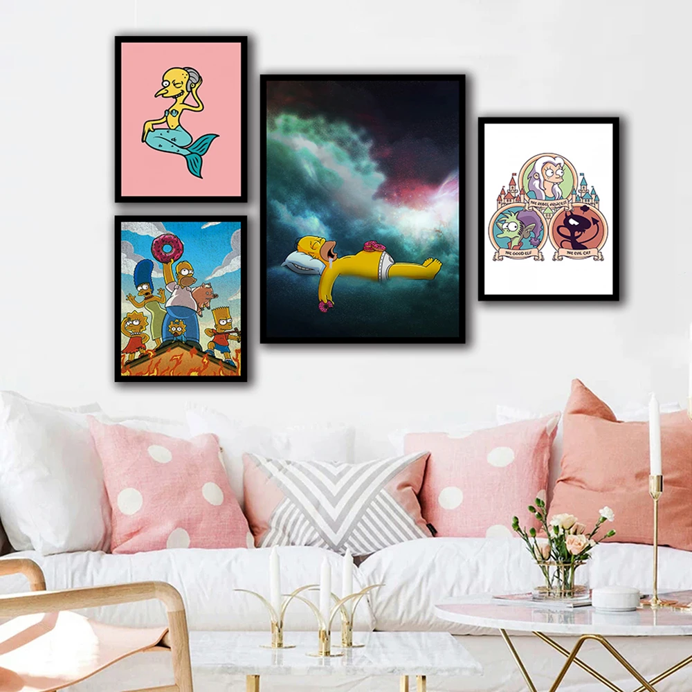 Настенное художественное полотно, домашний декор, Hd печатные плакаты в стиле Симпсонов, настенные плакаты в стиле ретро, современные модульные фото для Woonka