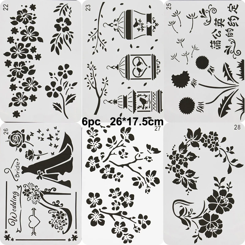 6pC трафарет многоразовая картина шаблон DIY трафареты настенная живопись скрапбук раскраска тиснение альбом декоративные бумажные карты шаблон