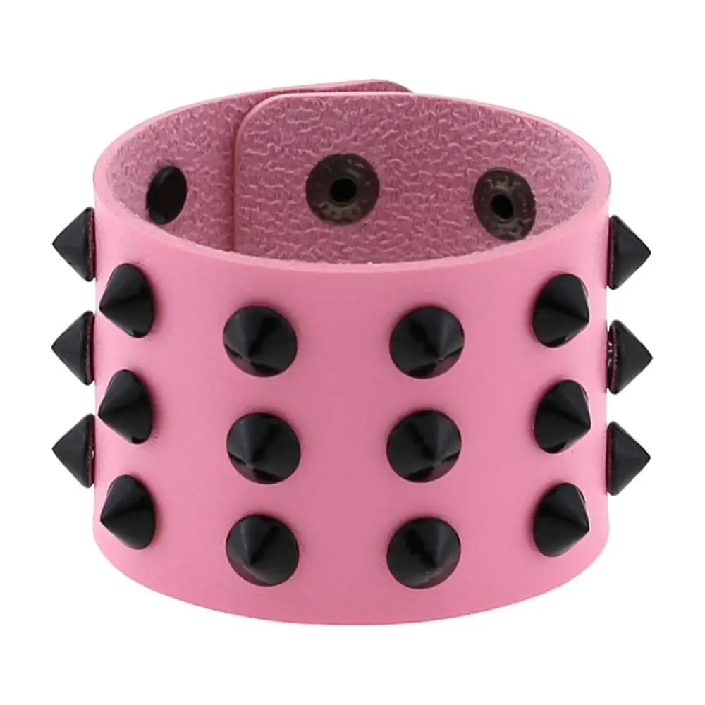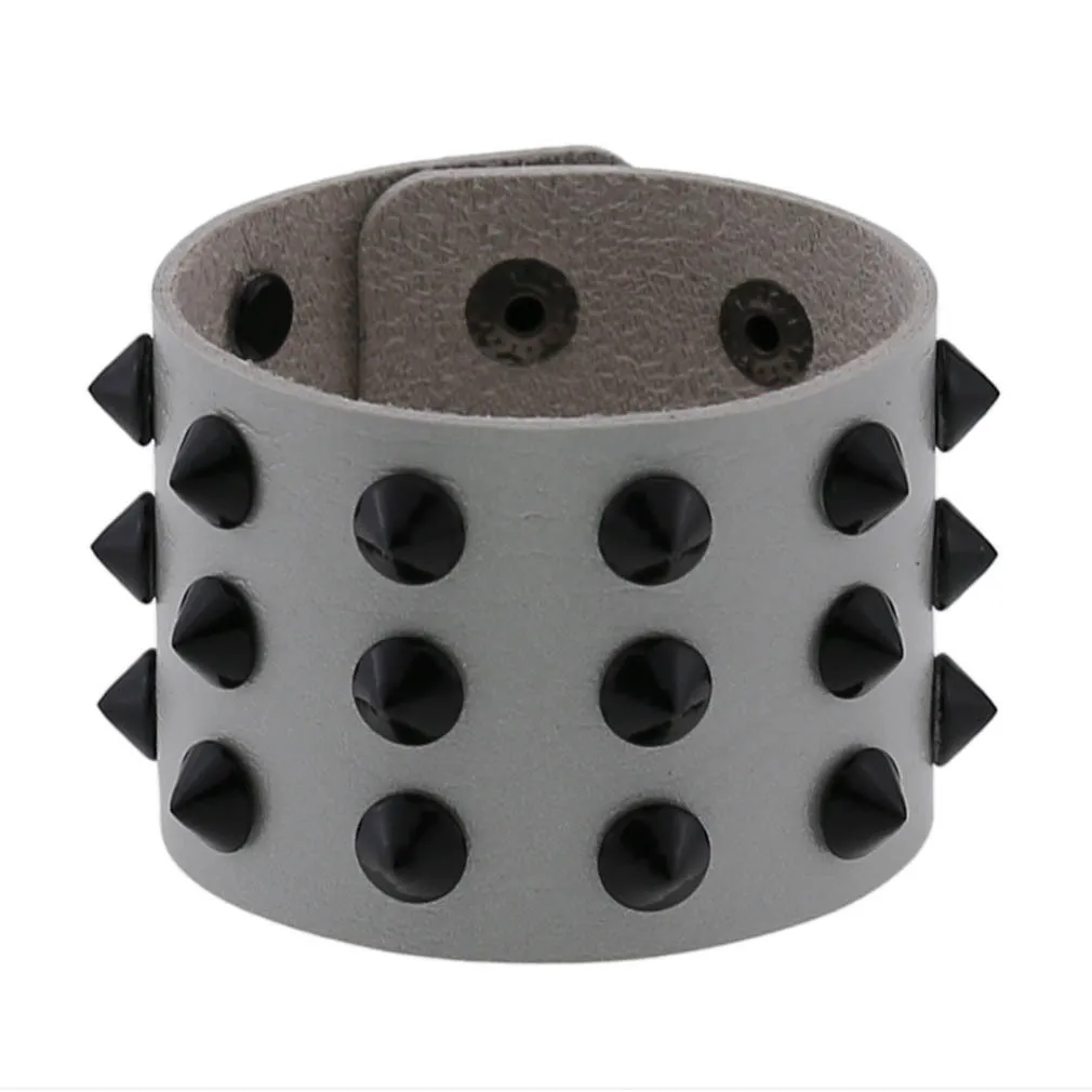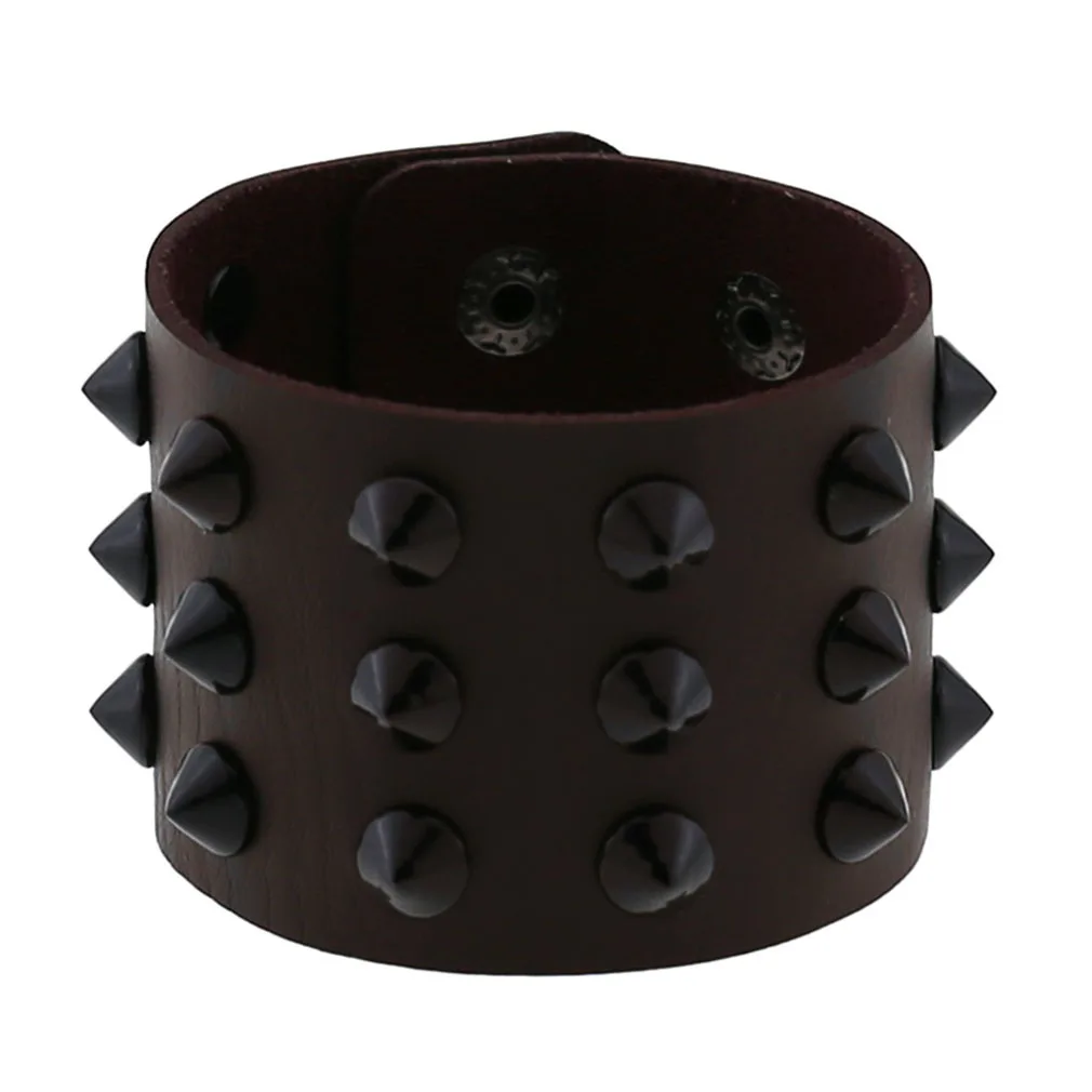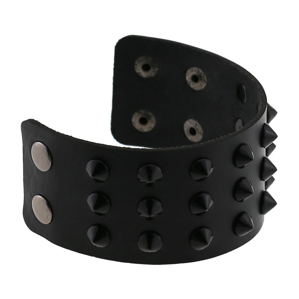 Кожаный браслет на запястье для мужчин и женщин, ювелирное изделие в готическом стиле, с заклепками в 3 ряда, в стиле панк, эмо-рок