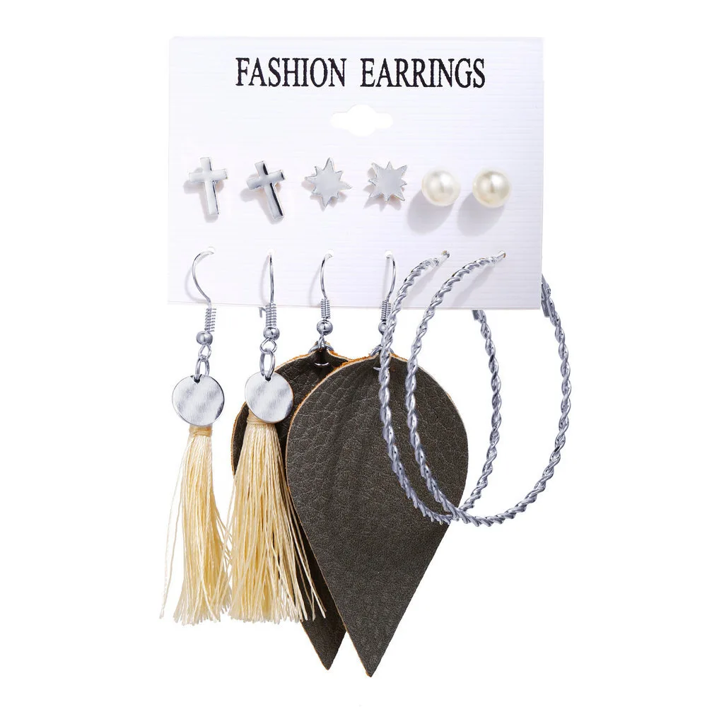 Набор сережек с треугольными кисточками, 6 пар в европейском и американском стиле