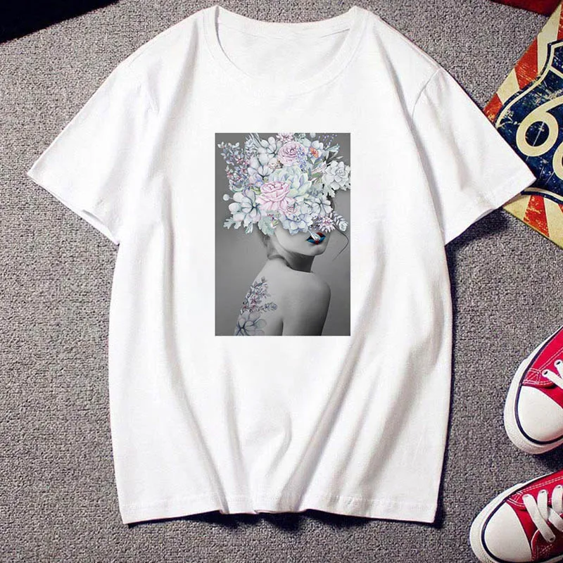 Футболка женская, с цветочным принтом, летняя, в стиле Харадзюку