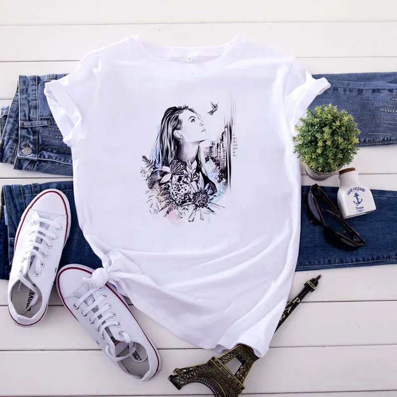 Футболка в стиле Харадзюку, футболка с принтом красивой девушки, же...