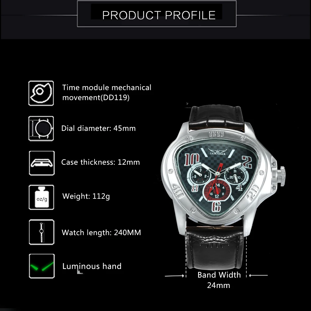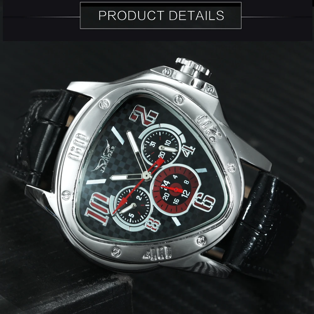 Мужские автоматические механические наручные часы Jarajar, треугольные часы с кожаным ремешком, 3 дополнительных циферблата, 6 стрелок