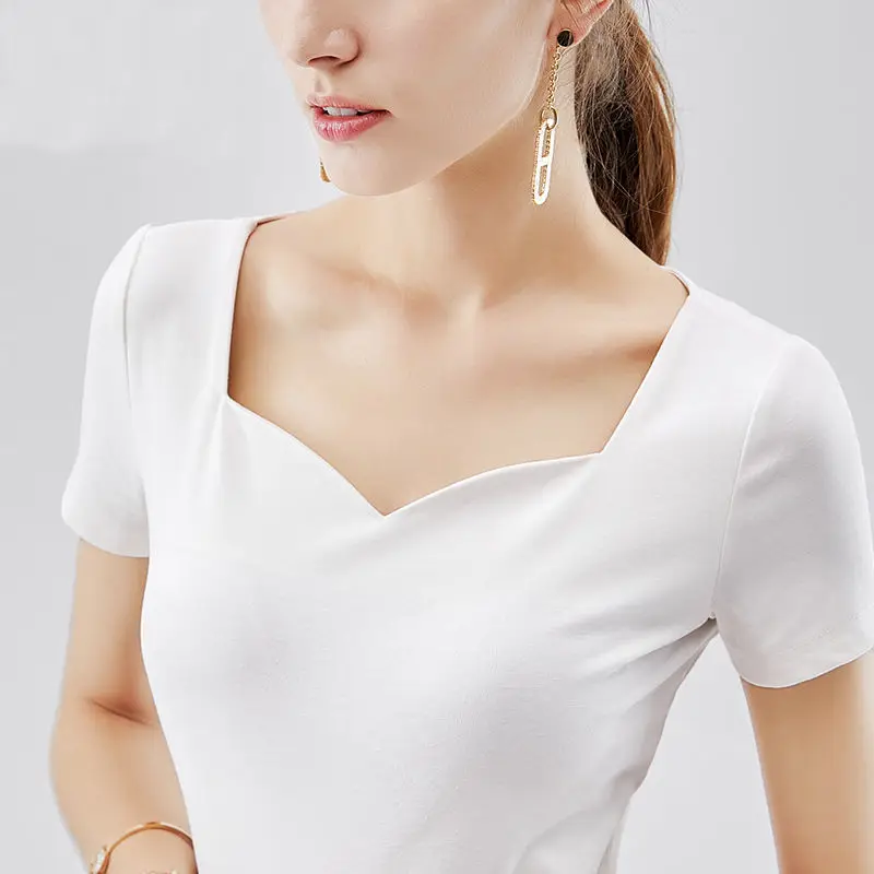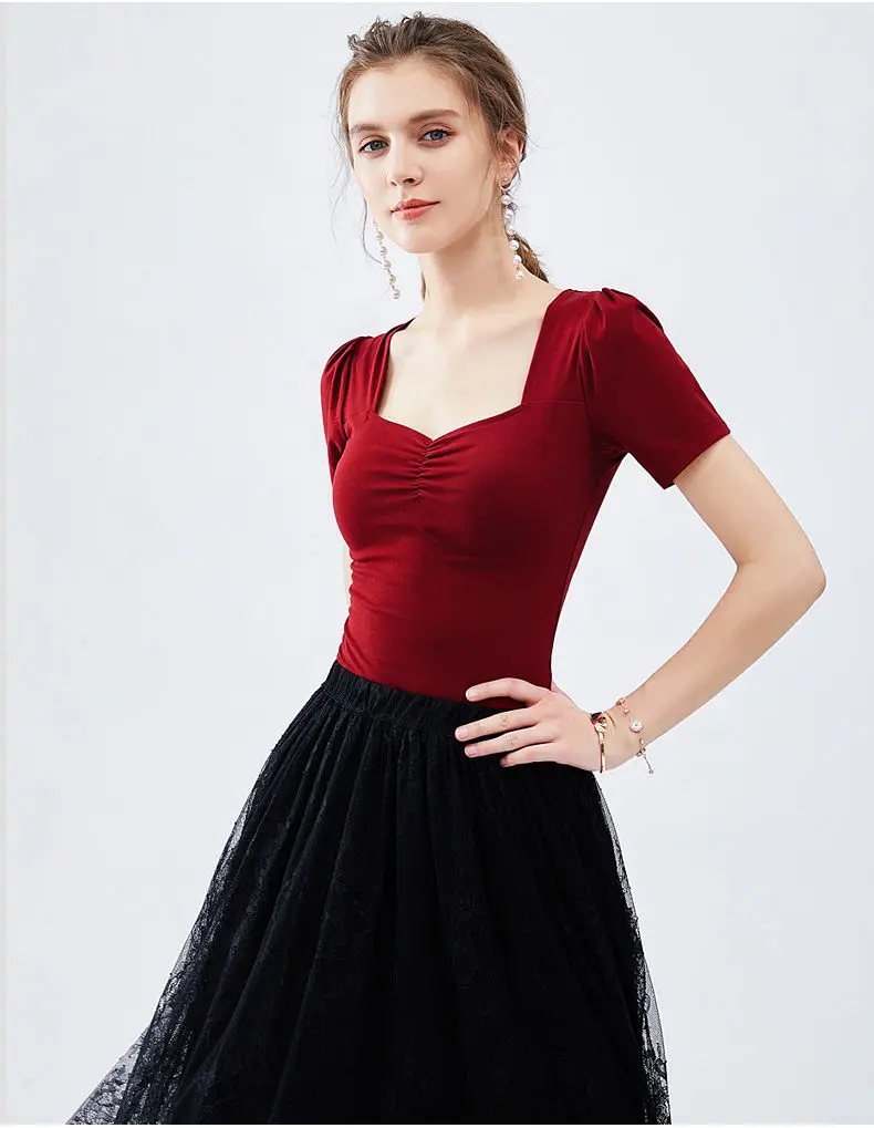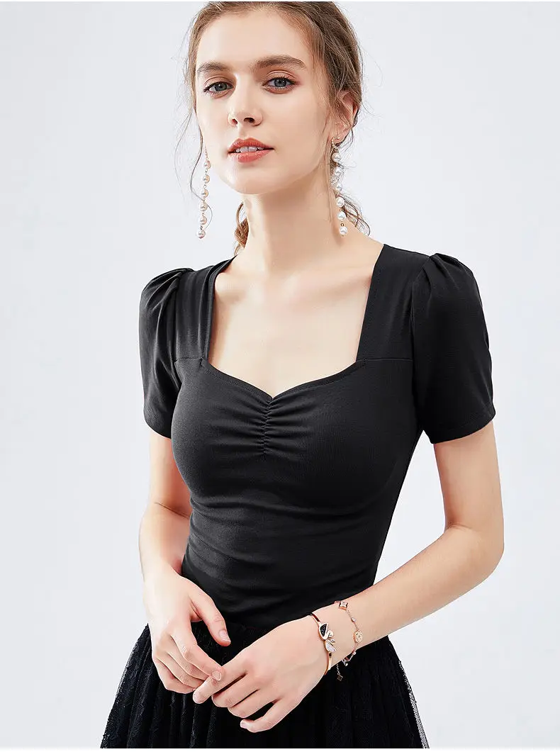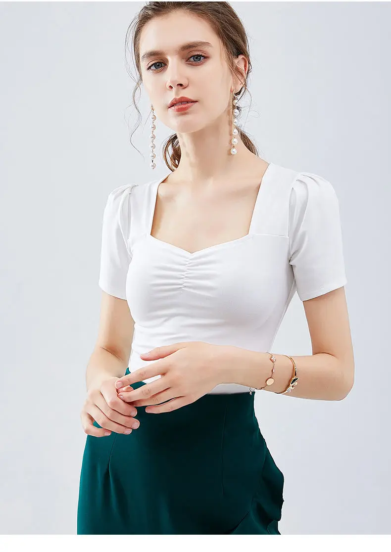 JuneLove 2020 Летняя женская блузка с рукавами-фонариками и квадратным воротником, модные сексуальные деловые Топы больших размеров в Корейском стиле со складками