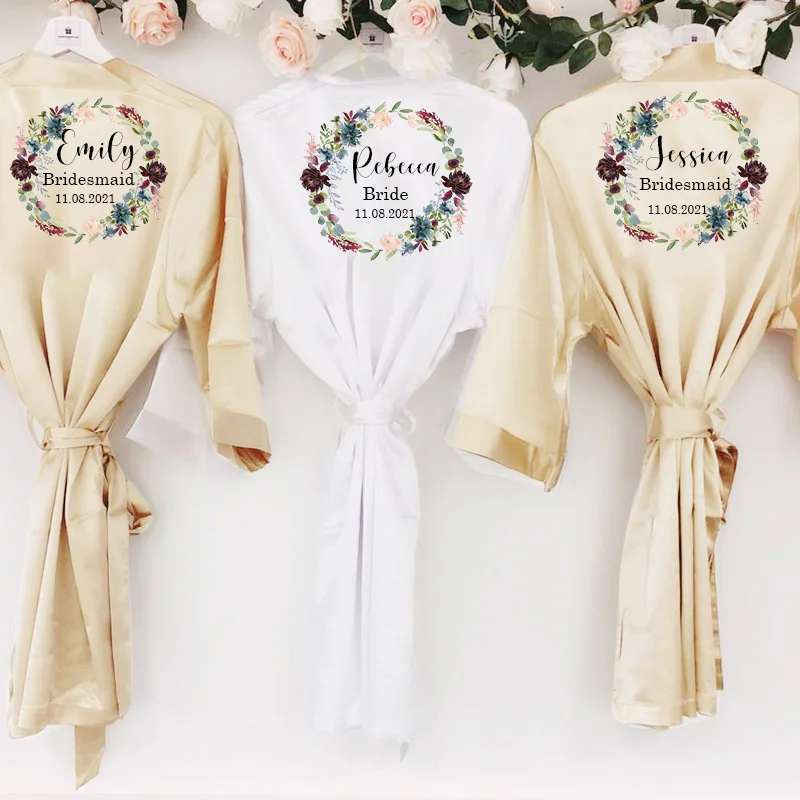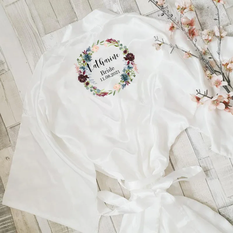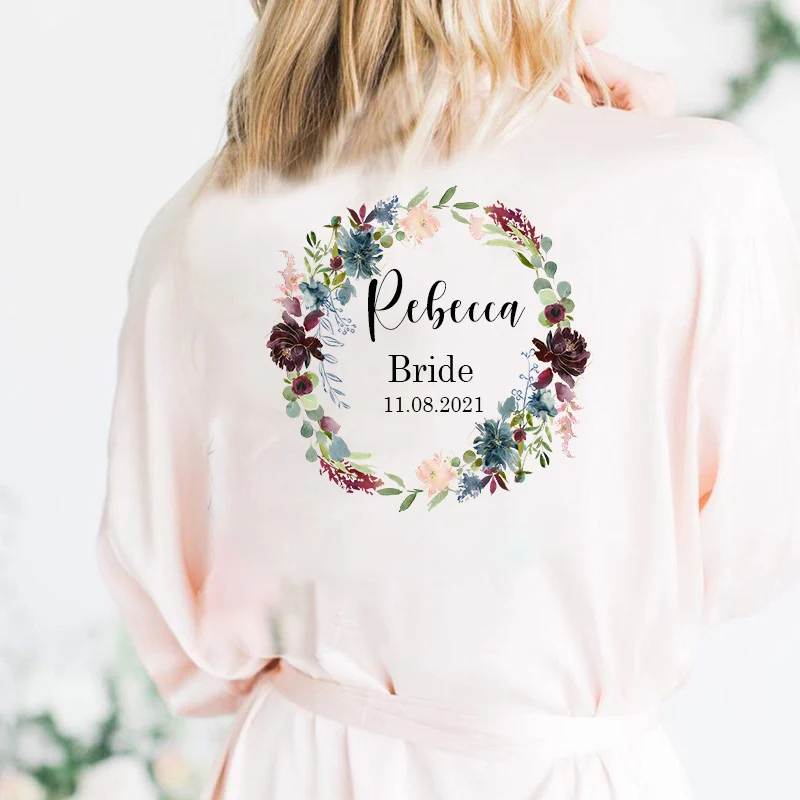 Свадебный Атласный халат, индивидуальное имя, цветочный принт