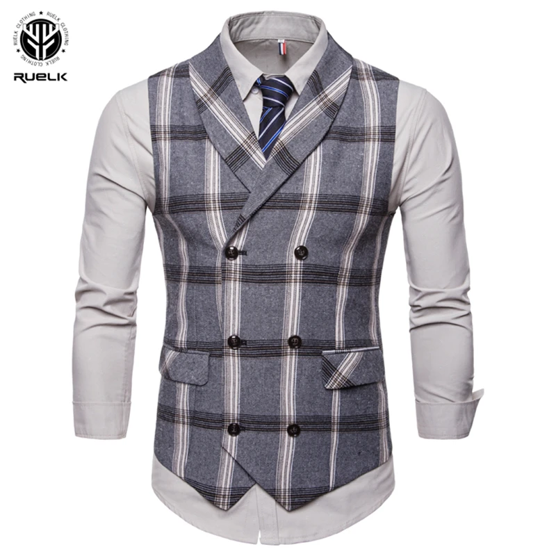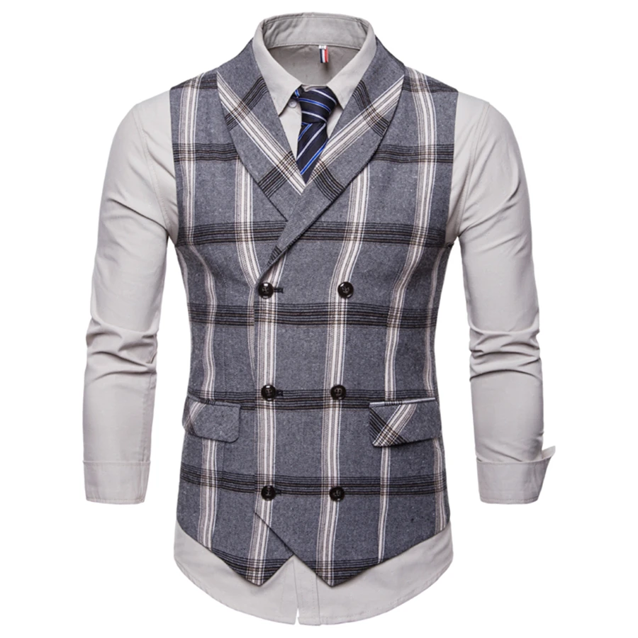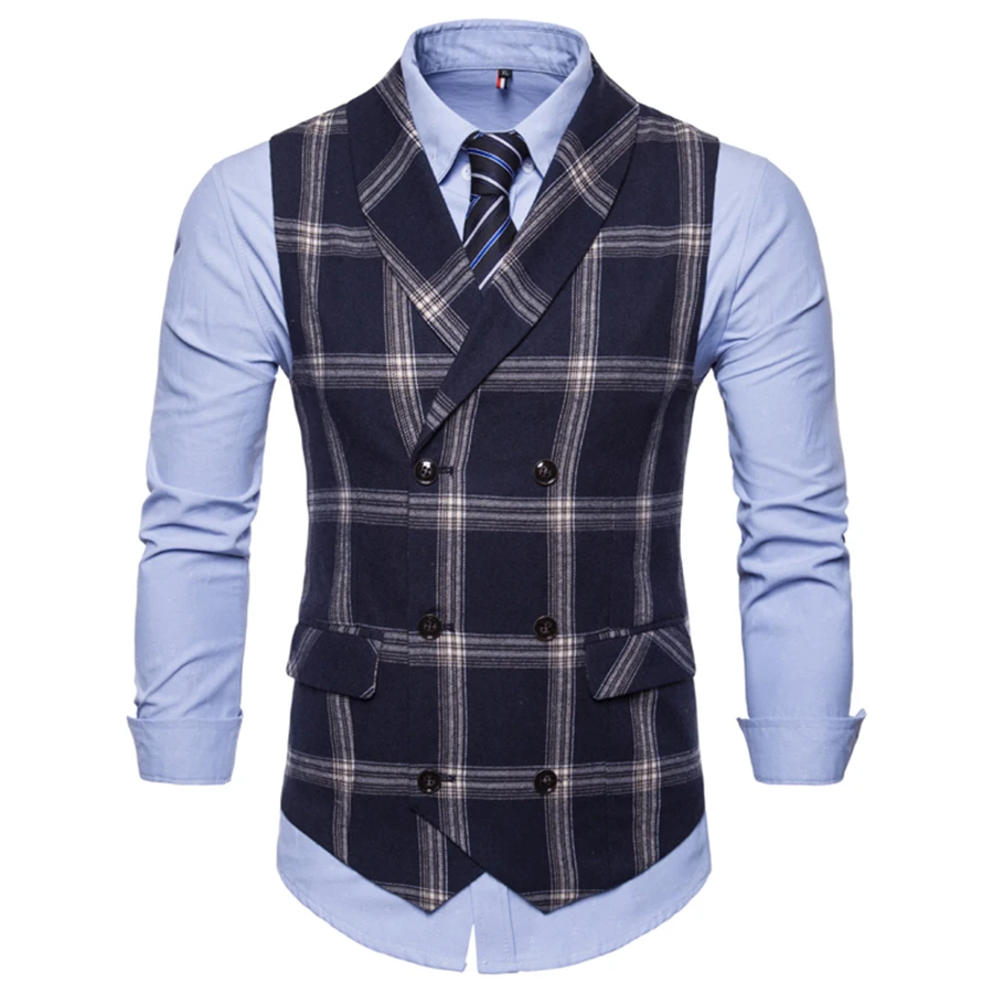 Жилет мужской весенне-осенний в клетку, без рукавов, S-2XL