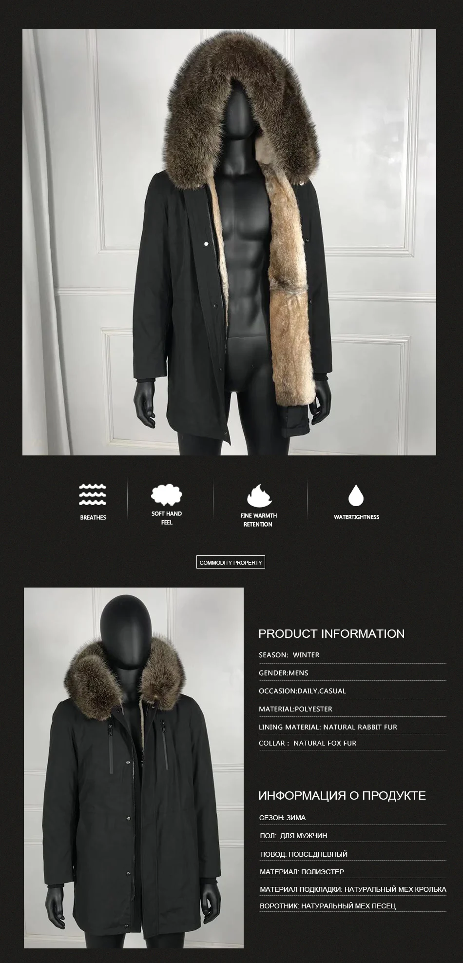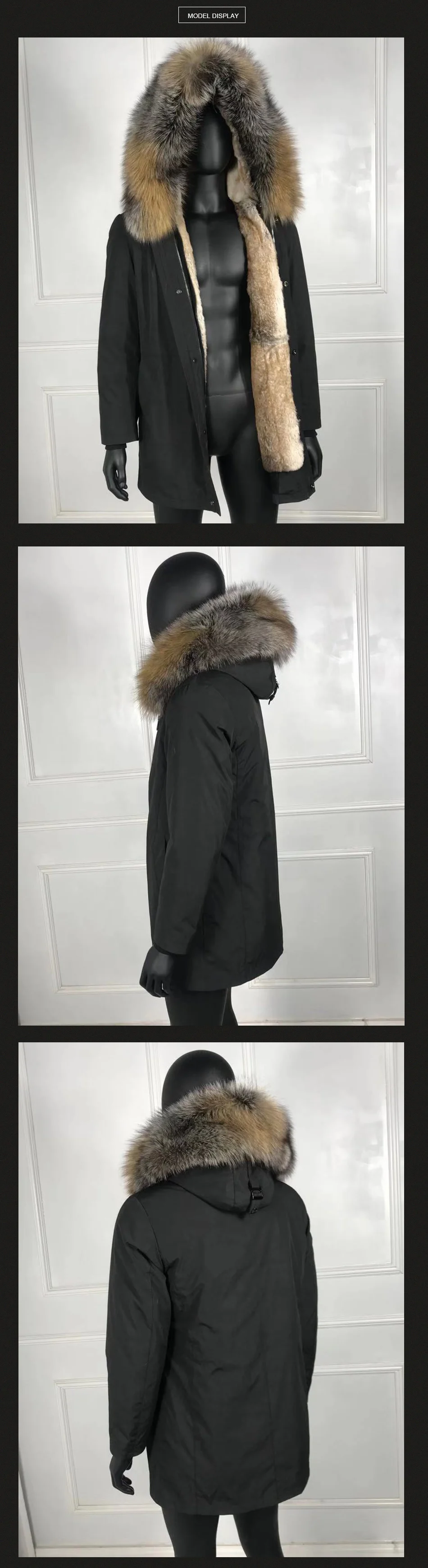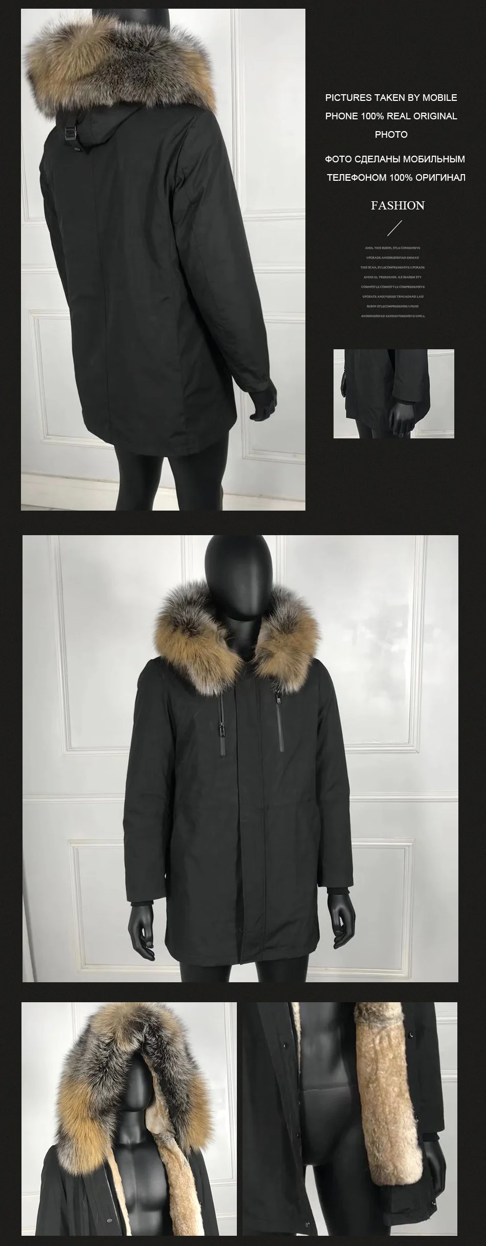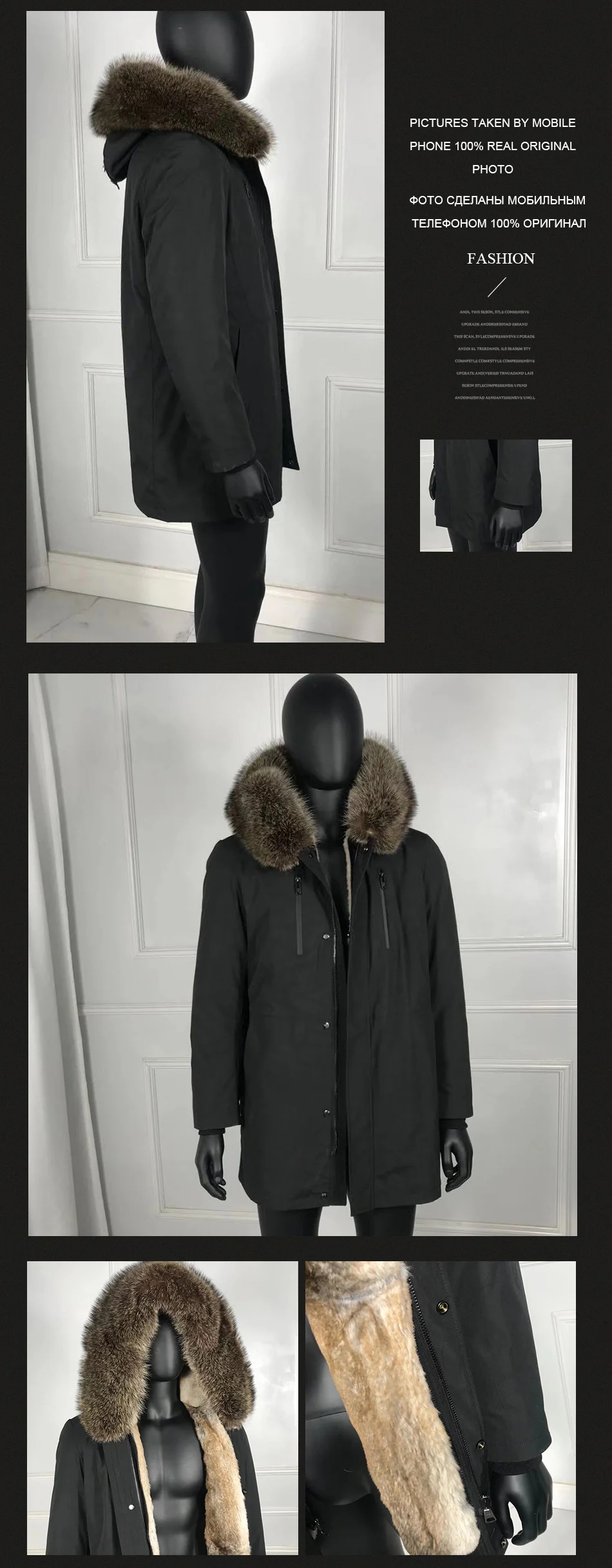 Мужская Зимняя Куртка парка 100% натуральный Лисий мех с кроличьим ...
