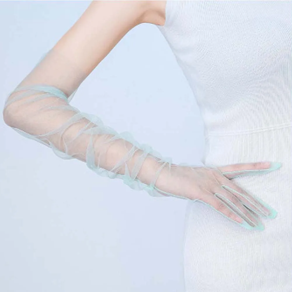 Женские прозрачные тюлевые перчатки 70 см, ультратонкие перчатки, д...