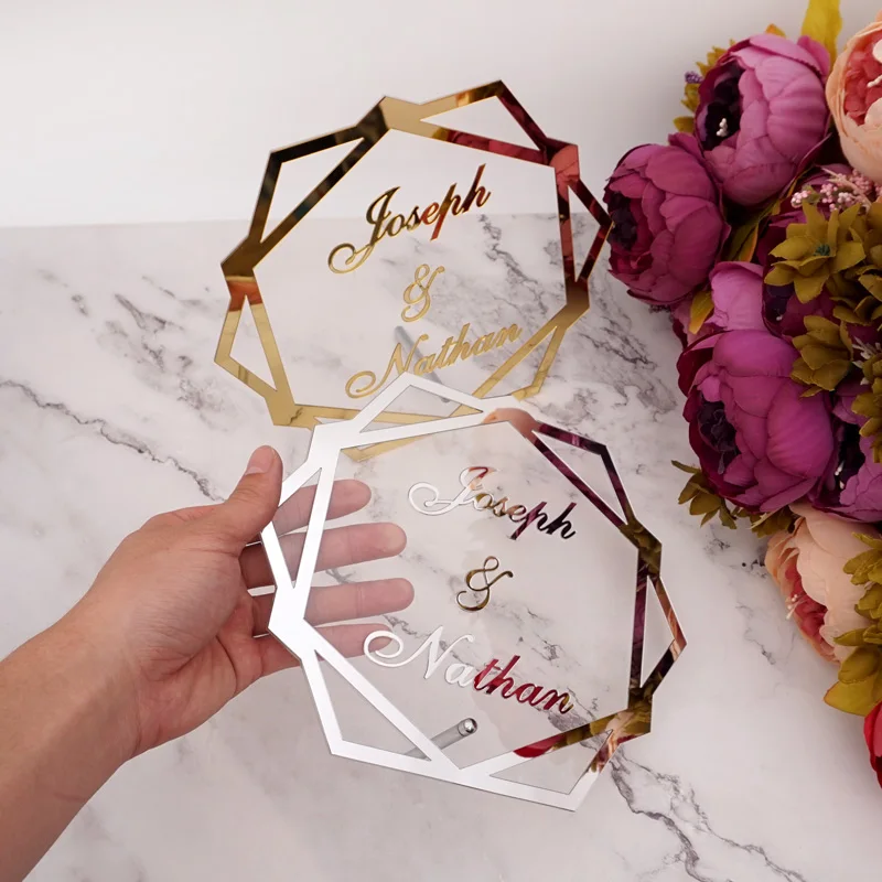 Акриловый стол с шестигранной подставкой, индивидуальное свадебное имя, индивидуальная зеркальная рамка, акриловый знак слов, вечерние украшения со стоячим гвоздиком