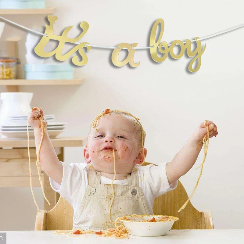 Золотой Серебряный баннер на день рождения, гирлянда для свадьбы, вечеринки, Висячие флажки для одного ребенка, день рождения, декор с флагами для будущей мамы