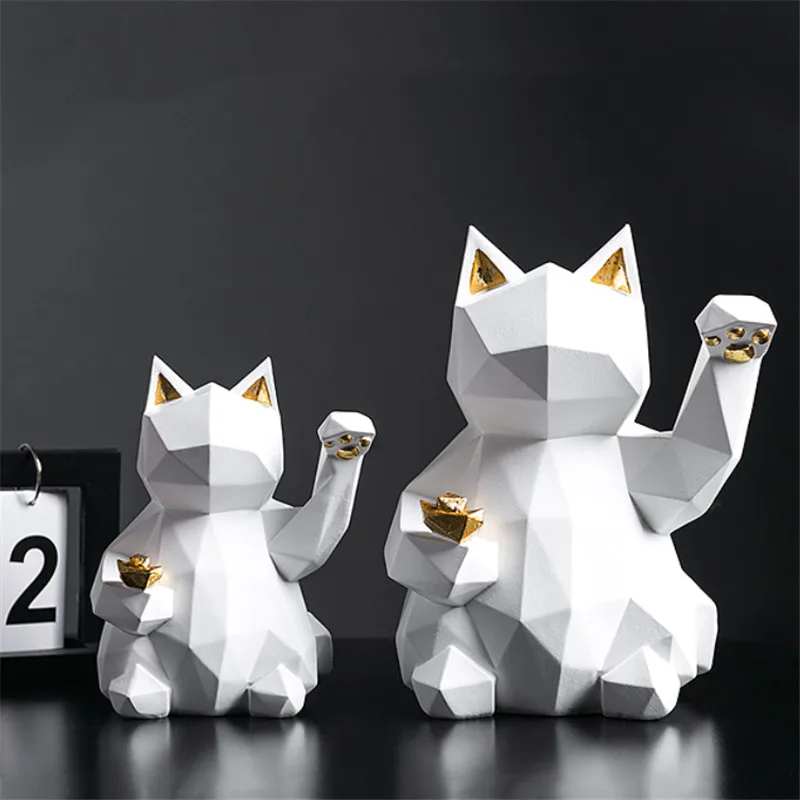 Креативные полимерные поделки в виде счастливой кошки, европейская офисная настольная фигурка животного, геометрические украшения, украшения для дома, подарок