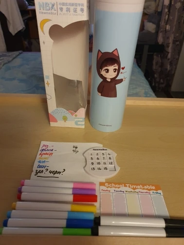 В Пушкин (СПб) пришёл за 9 дней. Заказала 08.08, получила 17.08.21. Ребёнок очень доволен. Так как дочь учит китайский, заказали с китайскими иероглифами. Все работает. Есть цветные фломастеры, чёрный 2 шт, калькулятор, тряпочка, зеркало, запись уроков, часы с датой и игра. Пенал на магнитах, удобно, что с двумя отделениями.