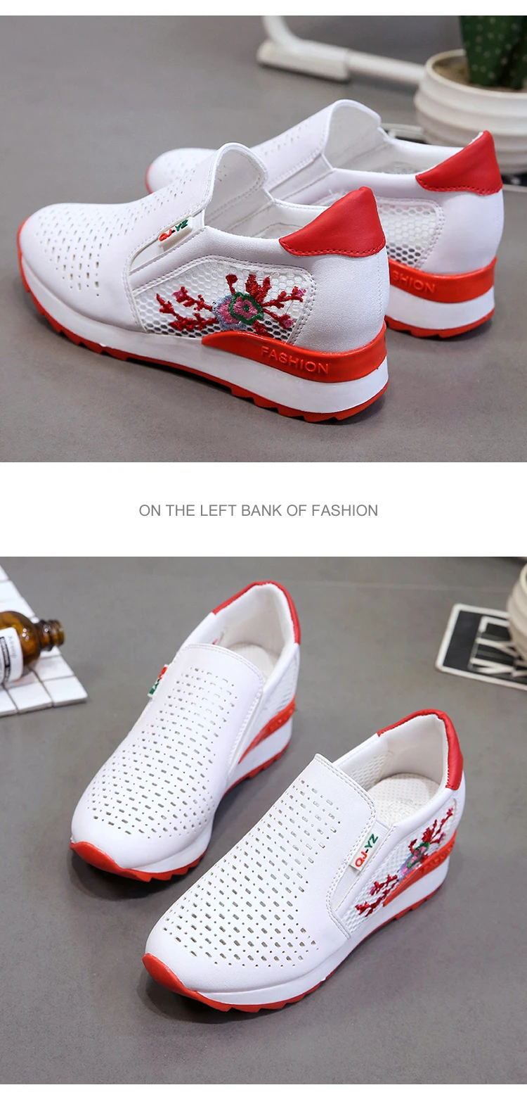 Женская Повседневная обувь; сезон весна-лето; Лоферы без шнуровки; разноцветные белые кроссовки с перфорацией, визуально увеличивающие рост