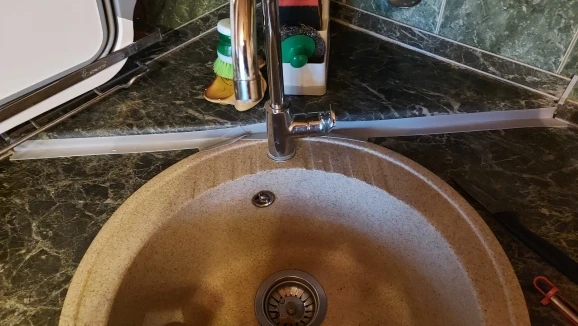 Товар соответствует описанию, приклеилась лента хорошо, но где раковина, вода соответственно, может отойти из за неидеальноровной поверхности, там где нет вода, идеально, товар доставили быстро, продавца рекомендую