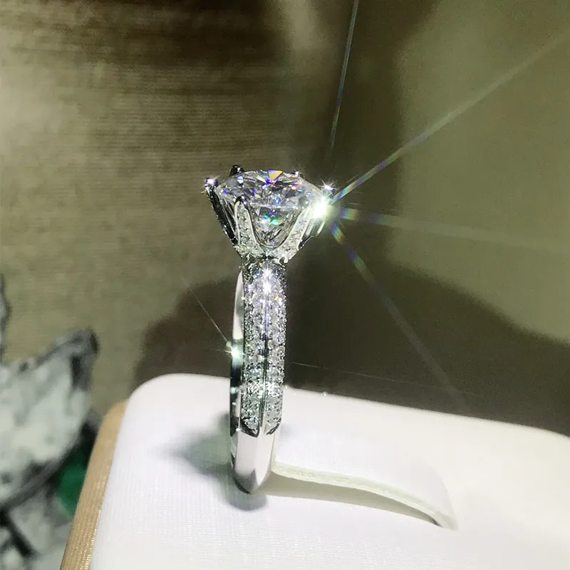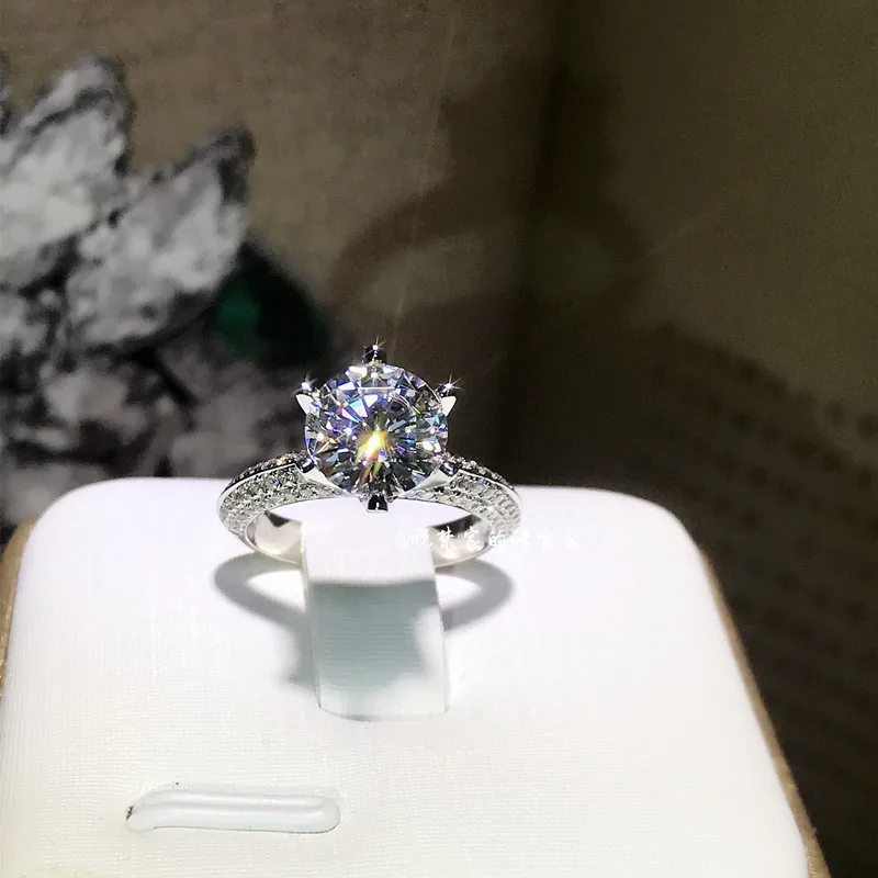 Женское кольцо с бриллиантом 2 карата, элегантное роскошное свадебное ювелирное изделие из настоящего серебра 925 пробы, обручальное кольцо для свадьбы