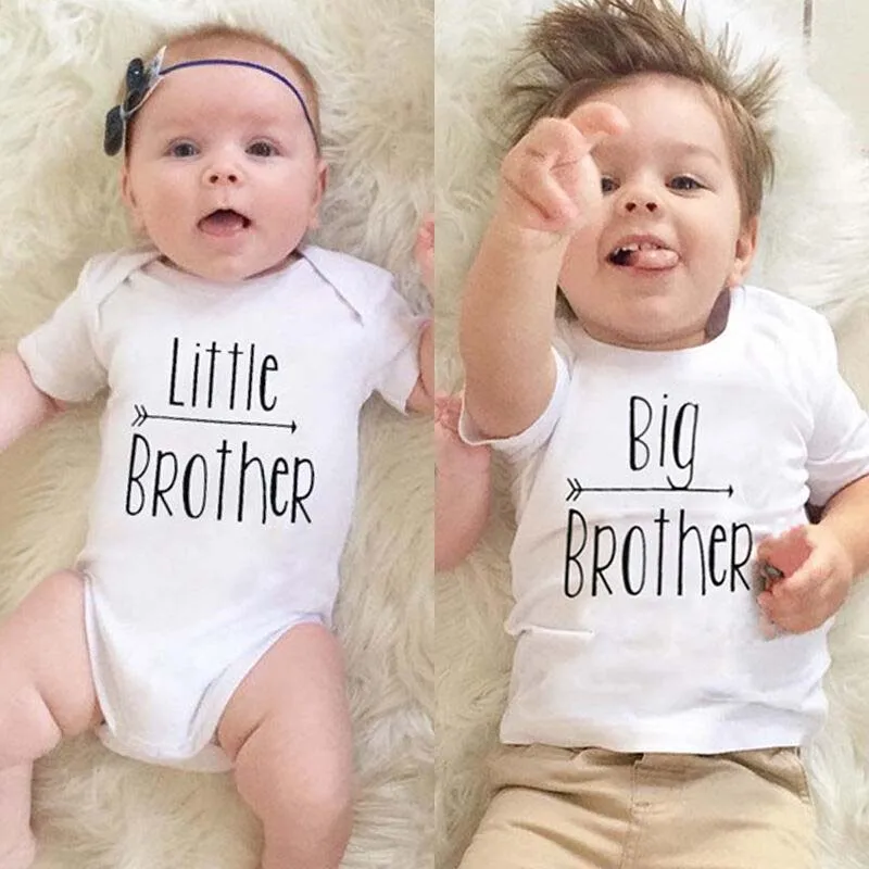 1 предмет, Одинаковая одежда для мальчиков с принтом Маленький Большой Брат, боди для маленьких детей, футболка с короткими рукавами, белые топы, повседневная одежда