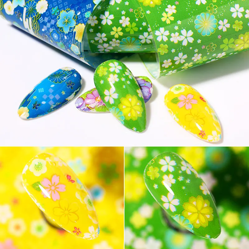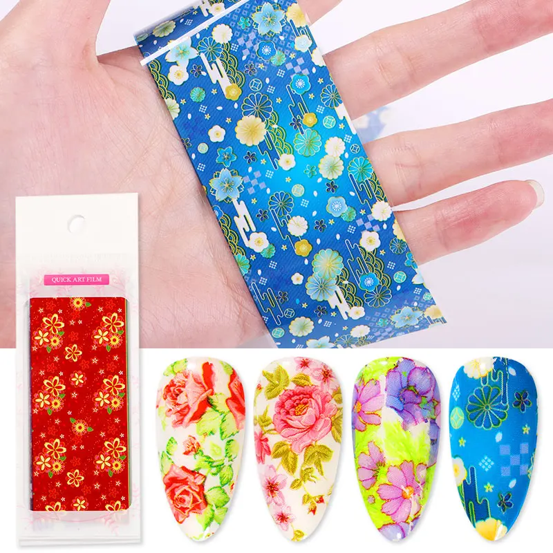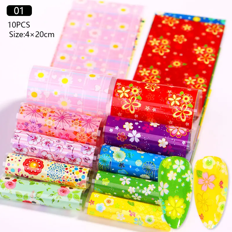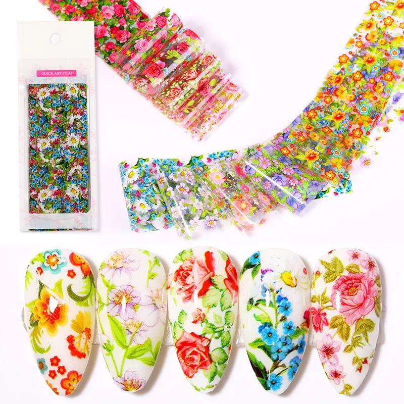 10 листовнабор наклейки для дизайна ногтей цветные цветочные узоры Фольга для перевода на ногти Смешанные Цветочные наклейки для ногтей переводные наклейки DIY аксессуары