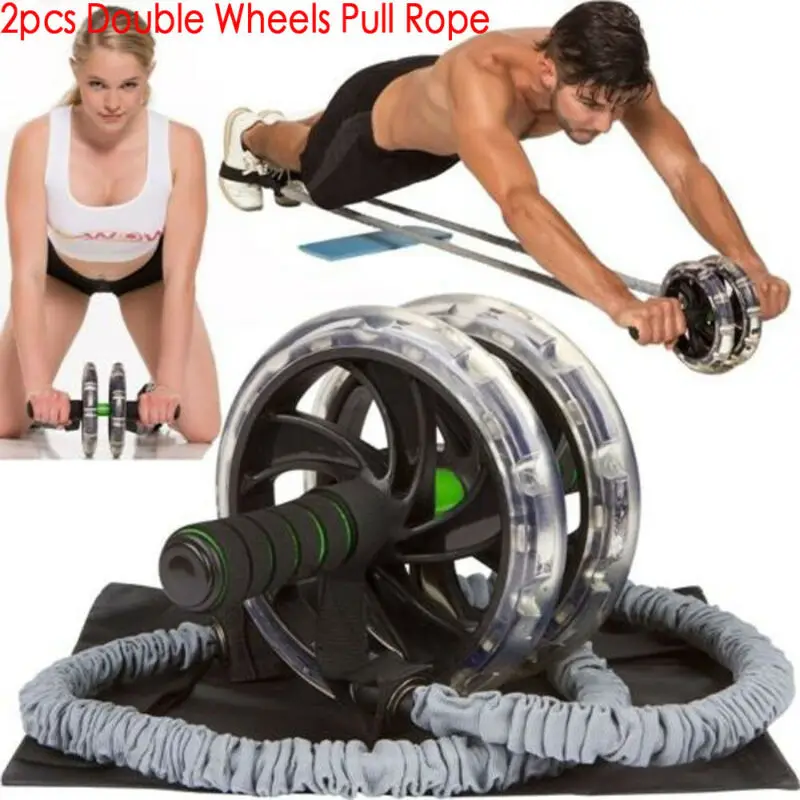 Новый пояса для йоги 2 шт. Двойные колеса ролик для пресса канат дл...