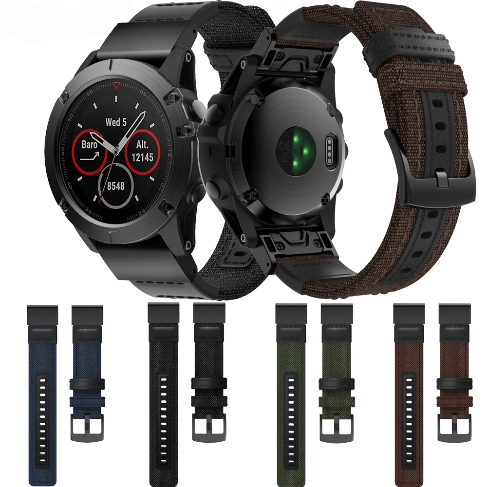 Ремешок из нейлона и кожи, 26 мм, для Garmin Fenix 5X, 5xplus, 6X, 6X Pro, 3HR