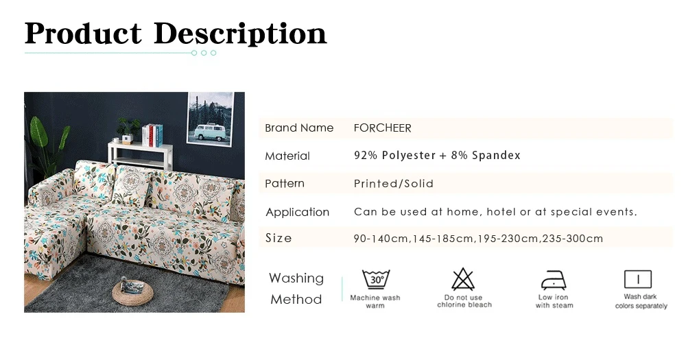 -Ткань высокой плотности защитит ваш диван от нежелательных пятен-Для высокой стойкости цветов используется технология трафаретной печати.-Эластичная ткань, которую просто использовать.-Бандаж и губка обеспечивает идеальную посадку, изделие не соскальзывает.-Доступны различные цвета и узоры, благодаря чему чехлы подходят для любых интерьеров.-Можно использовать дома, в гостинице или для особых случаев.-Поставляется в 4 размерах, подойдет для различный диванов и кушеток.-Можно стирать в стиральной машине.