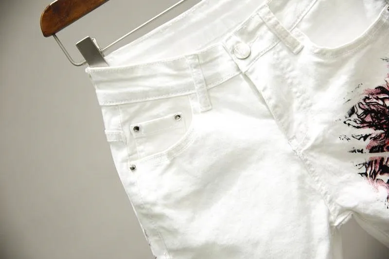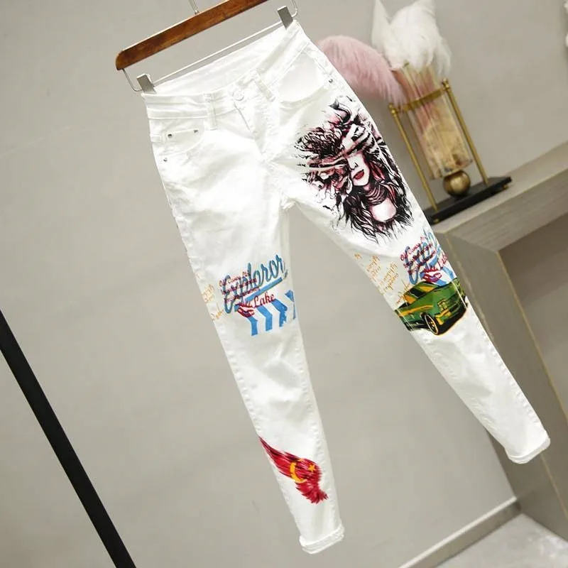Женские зауженные джинсы, белые зауженные джинсы-карандаш с принтом в виде граффити, модель Y77 на осень, размера плюс