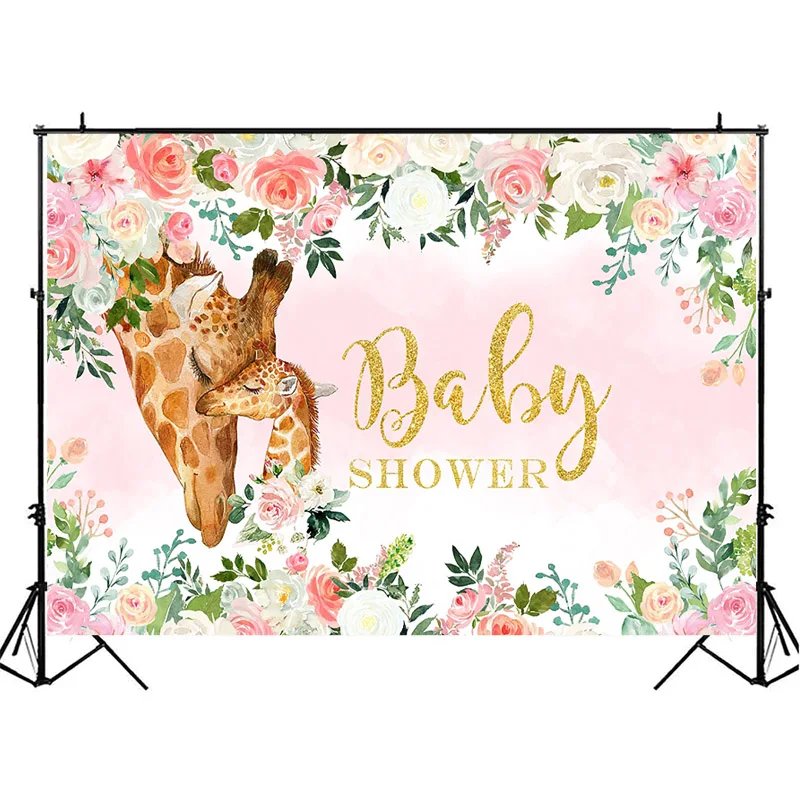 Дикие пятнистый олень детский душ фон розовые цветы детский душ вечерние фон для фотографии десертный стол декорации реквизит