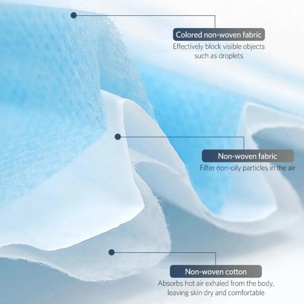 Маска 3-слойная Нетканая защитная маска для лица утолщенные однораз...