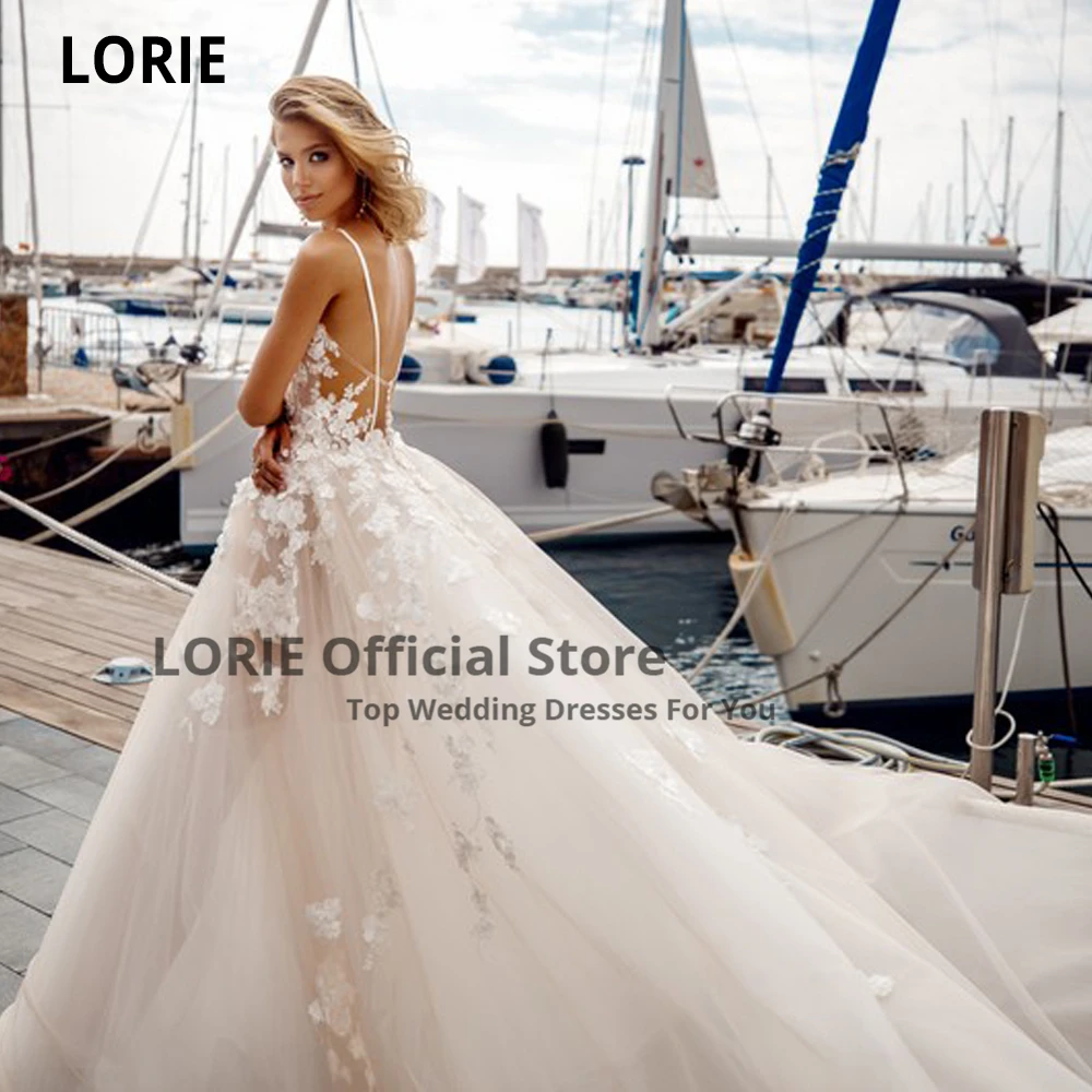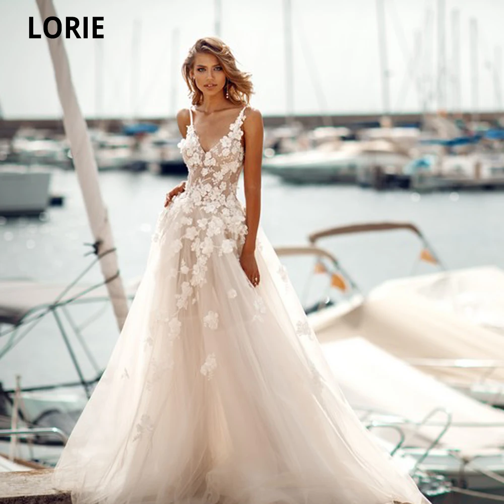 LORIE пляжные свадебные платья принцессы с V-образным вырезом без рукавов 3D Цветы женское платье невесты в стиле бохо на заказ