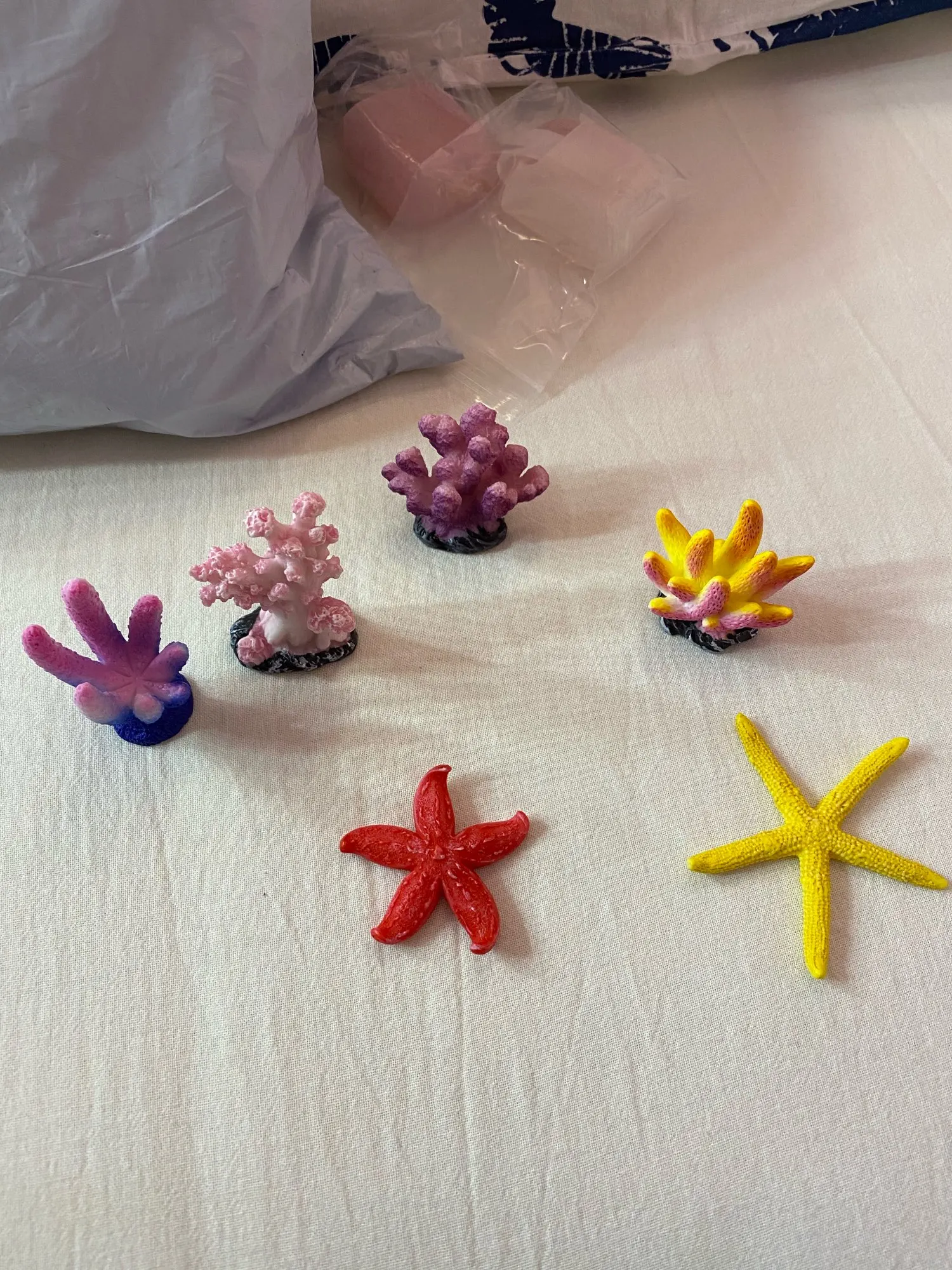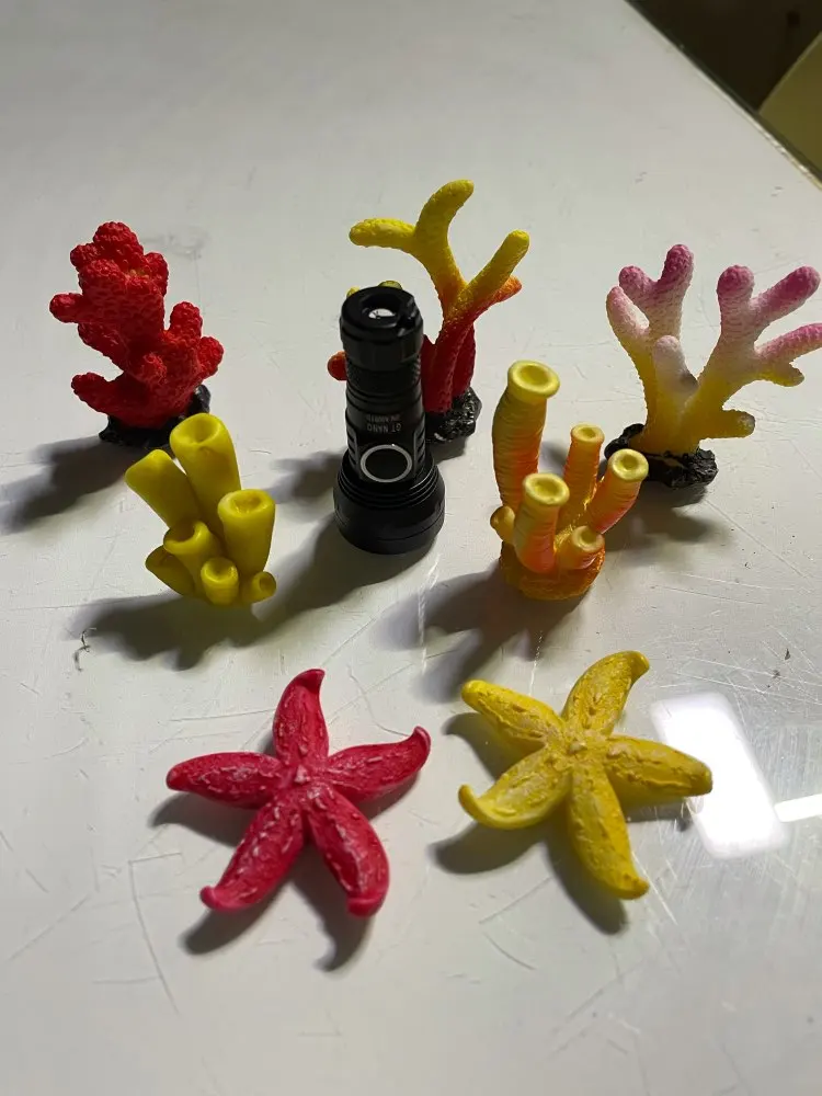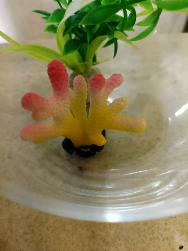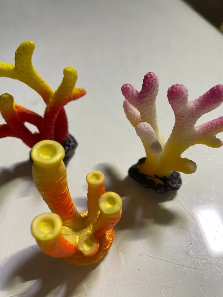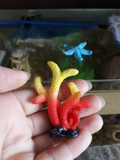 кораллы классные из пластика, яркие, не большого размера. в аквариуме смотрятся красиво. пришли в пакете с воздухом, продавец упаковал отлично, ни чего не повредилось.