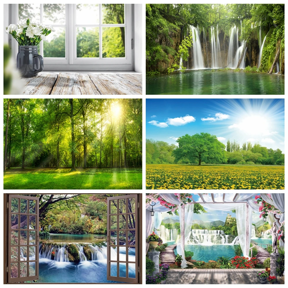 Фон для фотосъемки Yeele с изображением весеннего окна природного пейзажа водопад озеро Зеленые фотообои для фотостудии