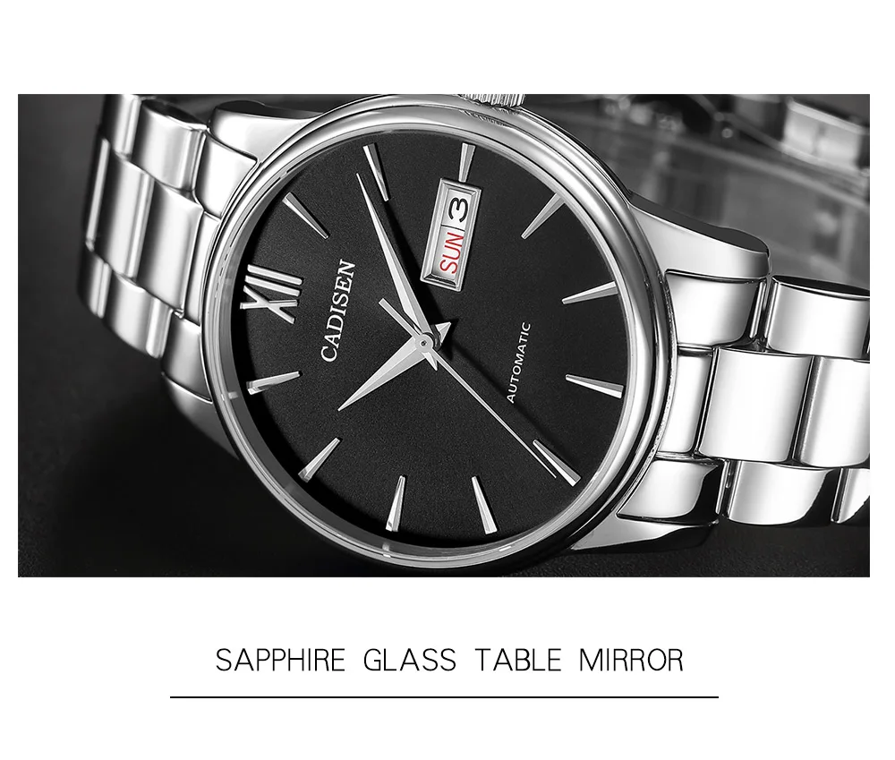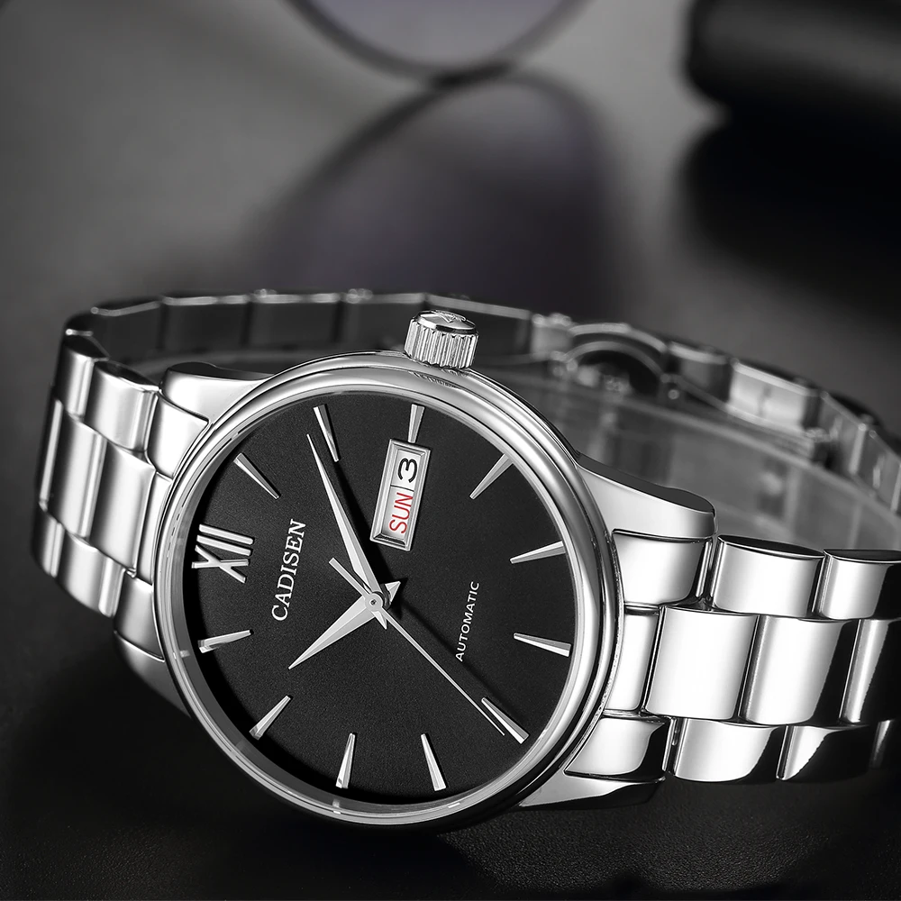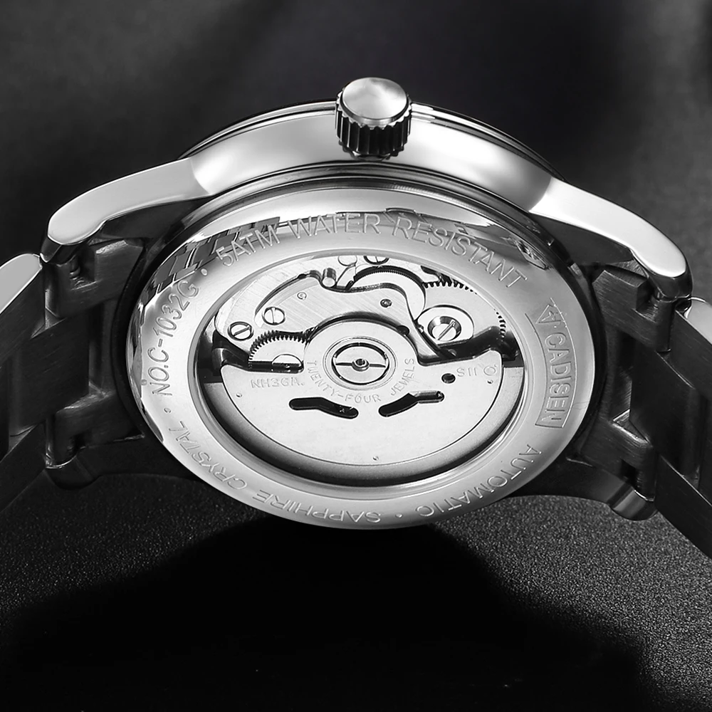 Часы наручные CADISEN Мужские автоматические, роскошные модные полностью стальные, с японским механизмом NH36, водонепроницаемость 50 м