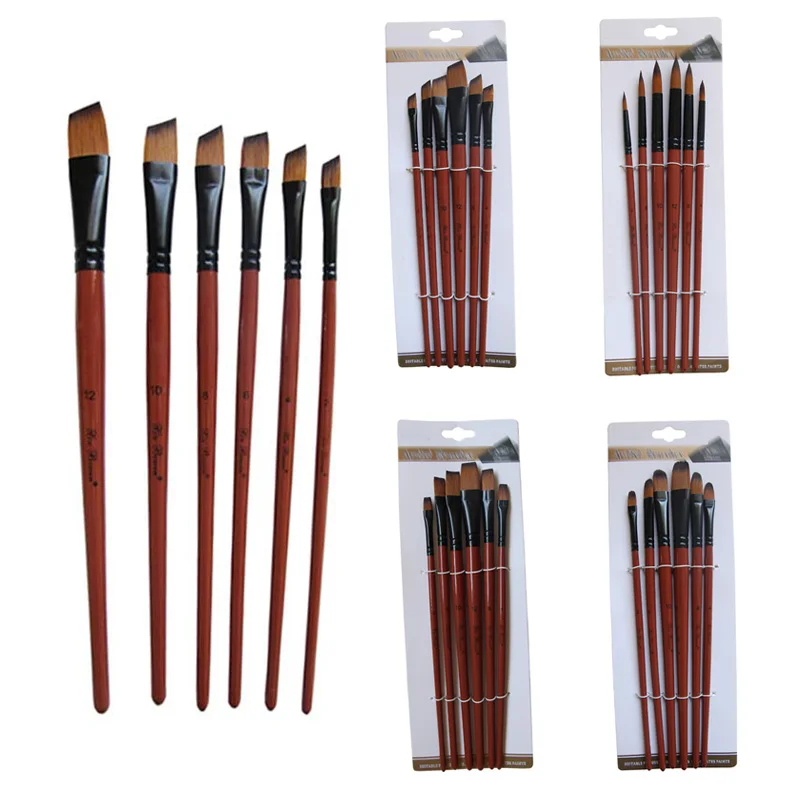 Кисти для рисования акварелью, маслом, нейлоновыми волосами, 6 шт.компл.