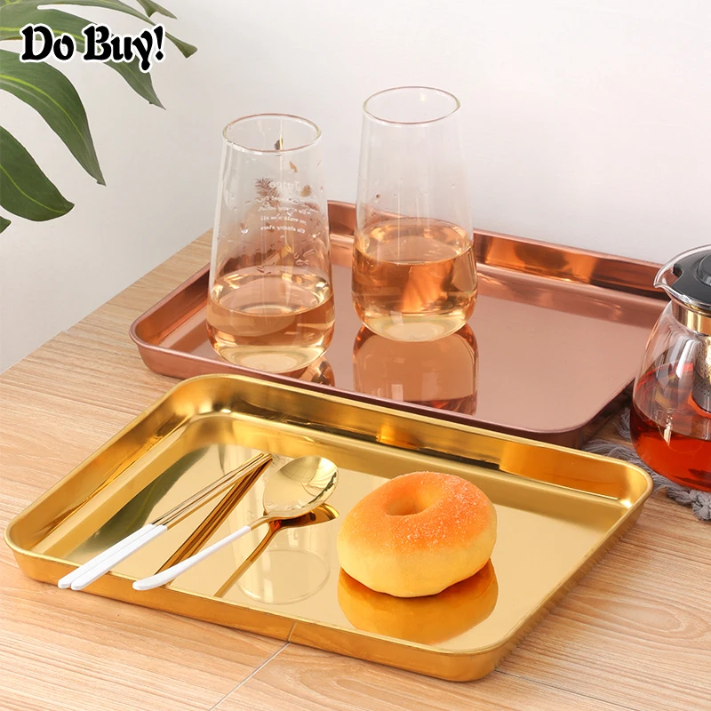 Поднос золотистый из нержавеющей стали, декоративная металлическая ...