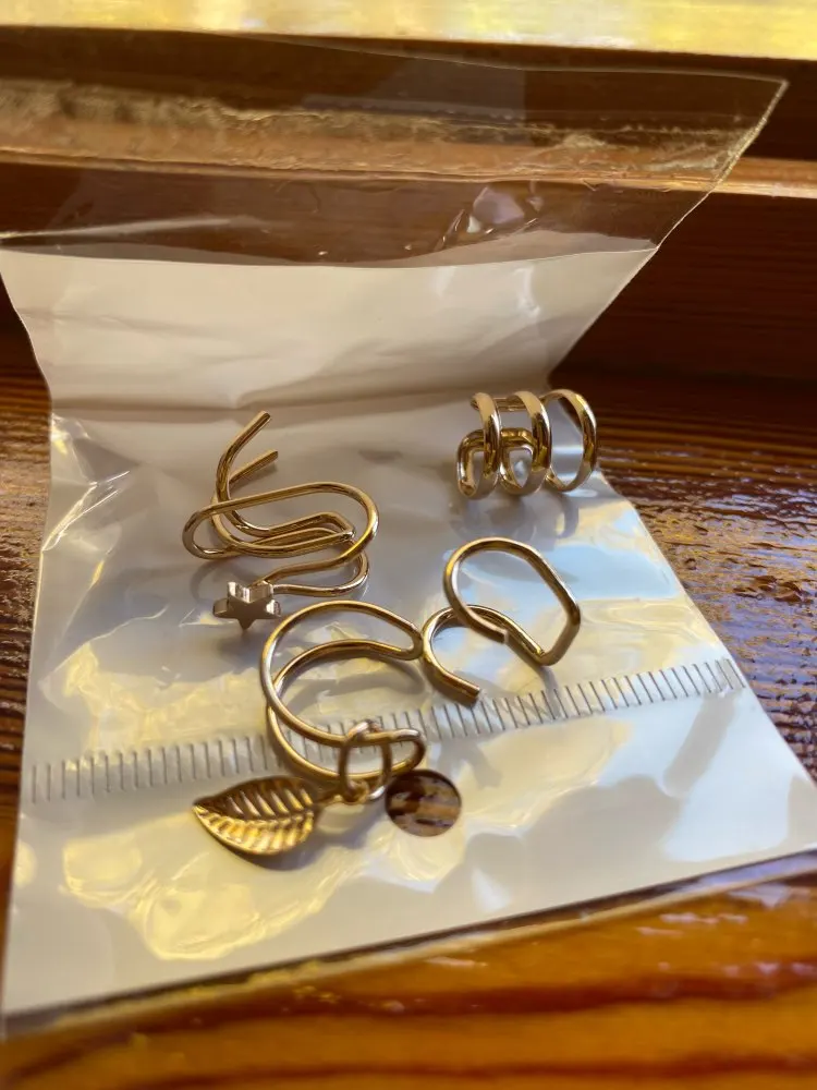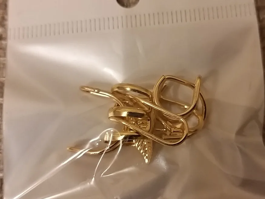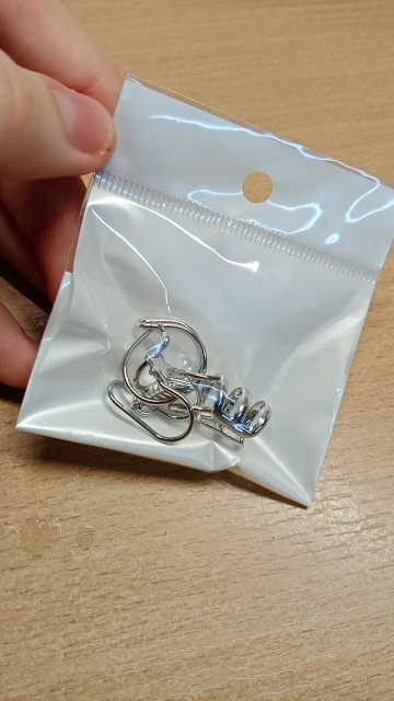 Заказала 11.11 пришла посылка в Самару 06.12. Объединили еще с пятью другими посылками для быстрой доставки. Верхние хорошо держаться на ухе. А нижний ряд, в середине согнуто так что туда и листочек не влезет, а боковые слишком широкие и падают. Надеюсь их можно подогнуть и не сломать)