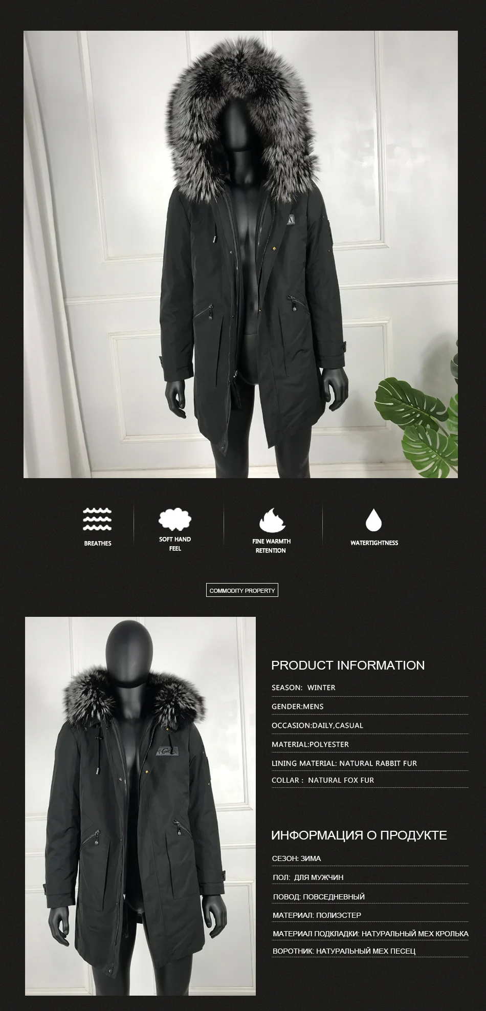 Мужские парки, зимние куртки, парки из натурального кроличьего меха, зимнее удобное теплое пальто с капюшоном