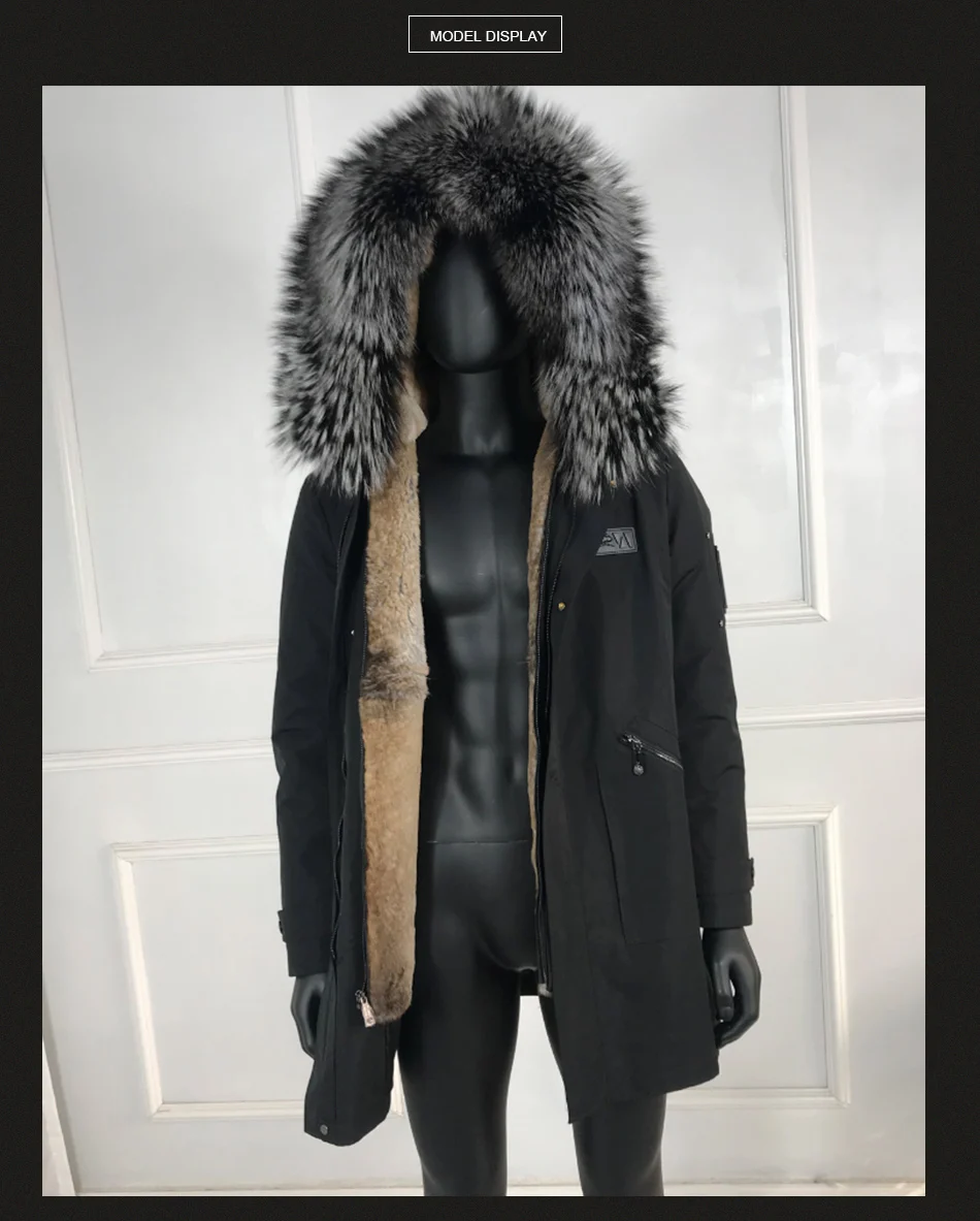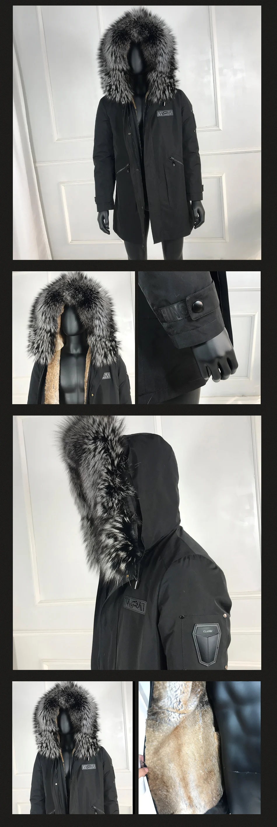 Мужская парка из кроличьего меха, зимняя теплая парка с подкладкой ...