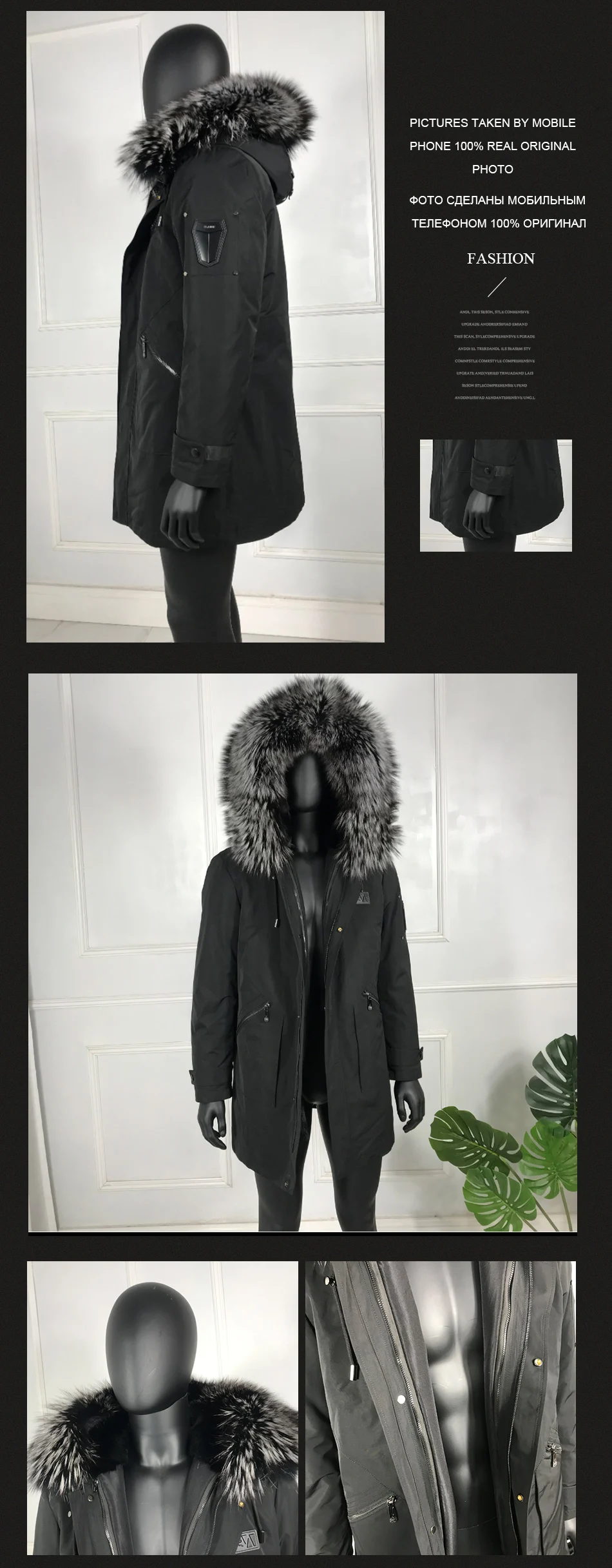 Мужские парки, пальто, куртка из натурального меха енота, зимняя мо...