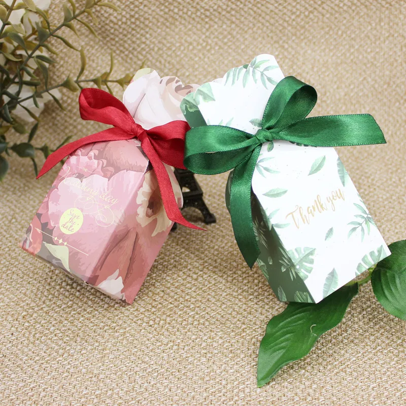 Коробка с зелеными лепестками для свадебных торжеств, коробка для шоколада, коробки для вечерние, рождественские подарочные коробки 50 шт.лот