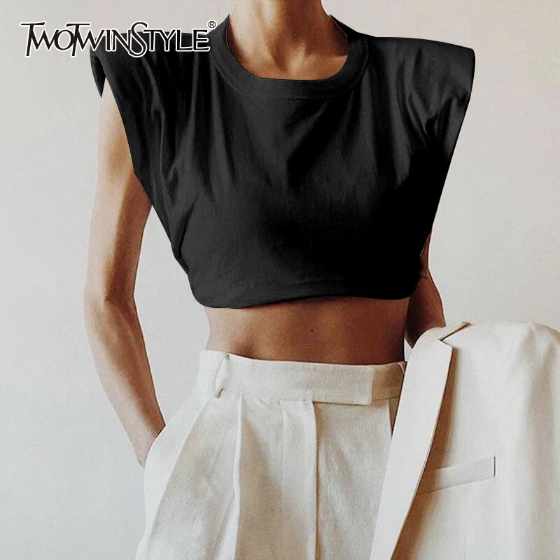 Женская футболка без рукавов TWOTWINSTYLE, с круглым вырезом, весна-лето, 2020