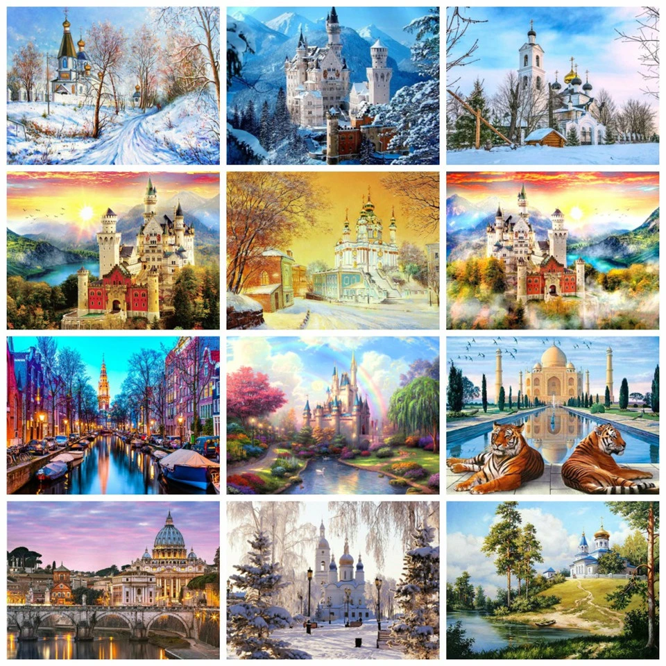 Пейзаж полноразмерная алмазная живопись замок Мозаика Искусство Картина Вышивка крестиком Стразы картина пазл Настенный декор