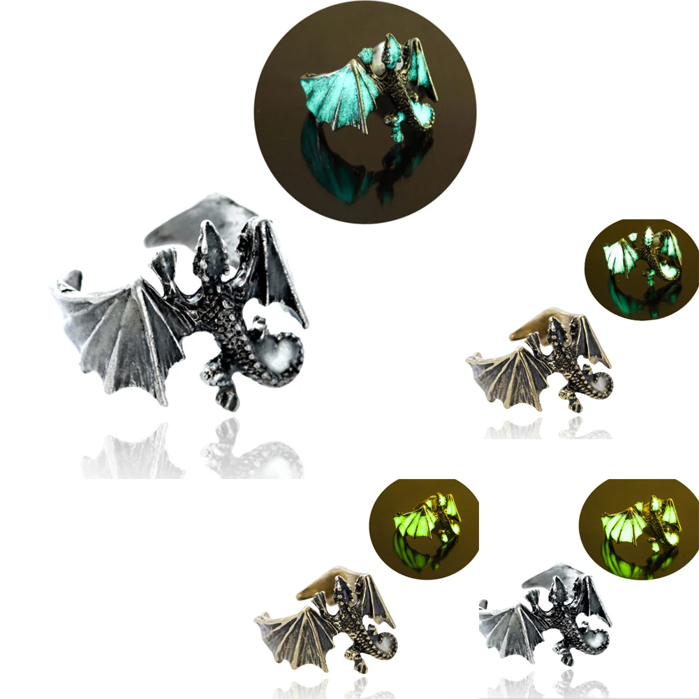 Винтажное кольцо в готическом стиле с драконом, кольцо в стиле панк, регулируемое кольцо, ювелирные изделия свободного размера, светящееся Винтажное кольцо в темноте