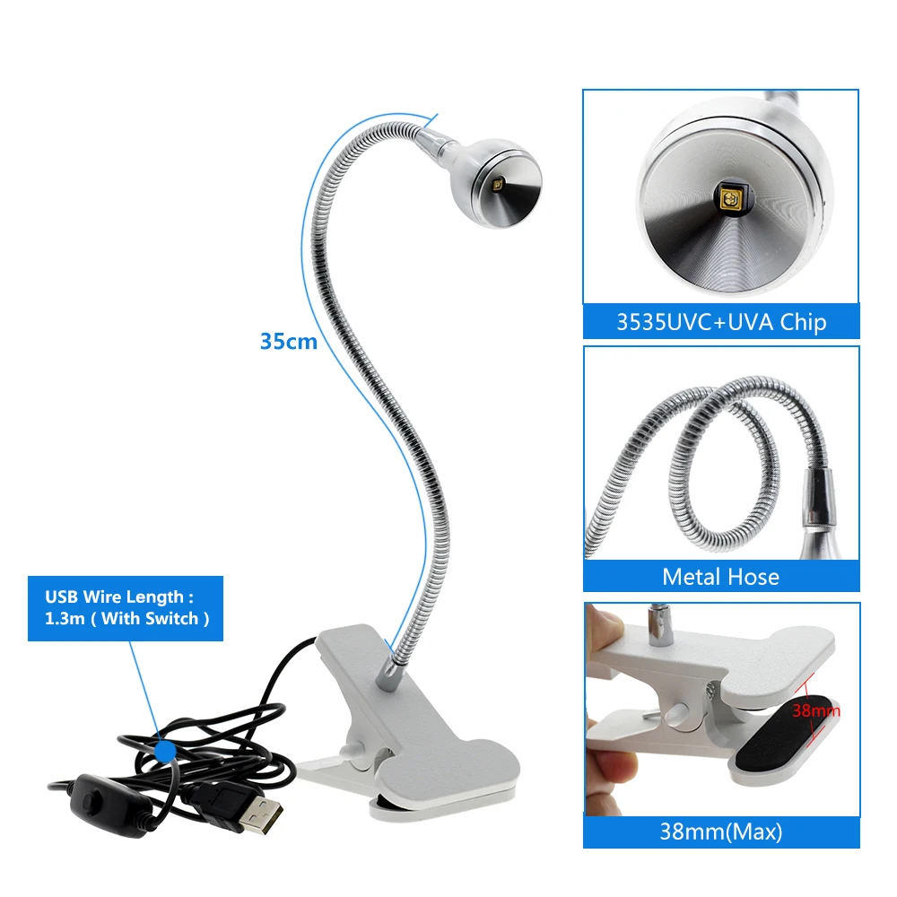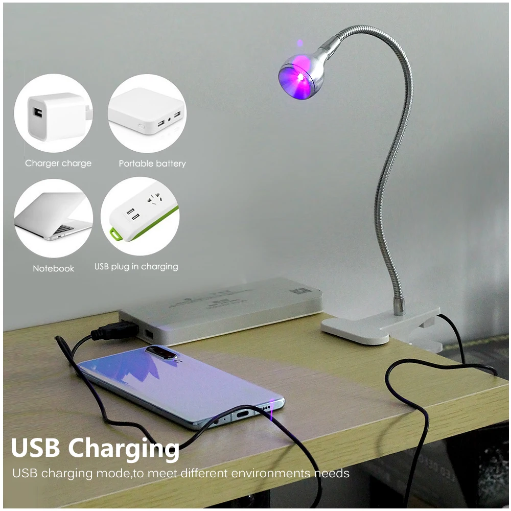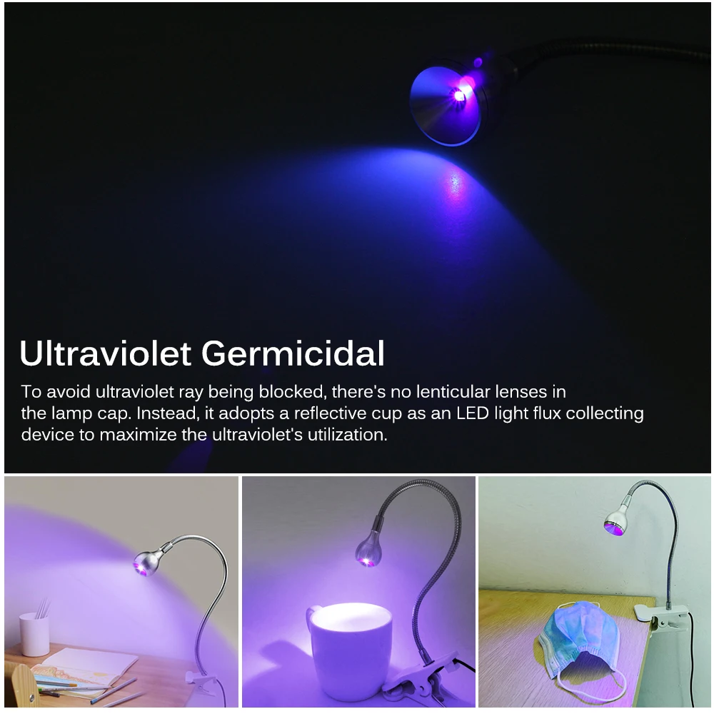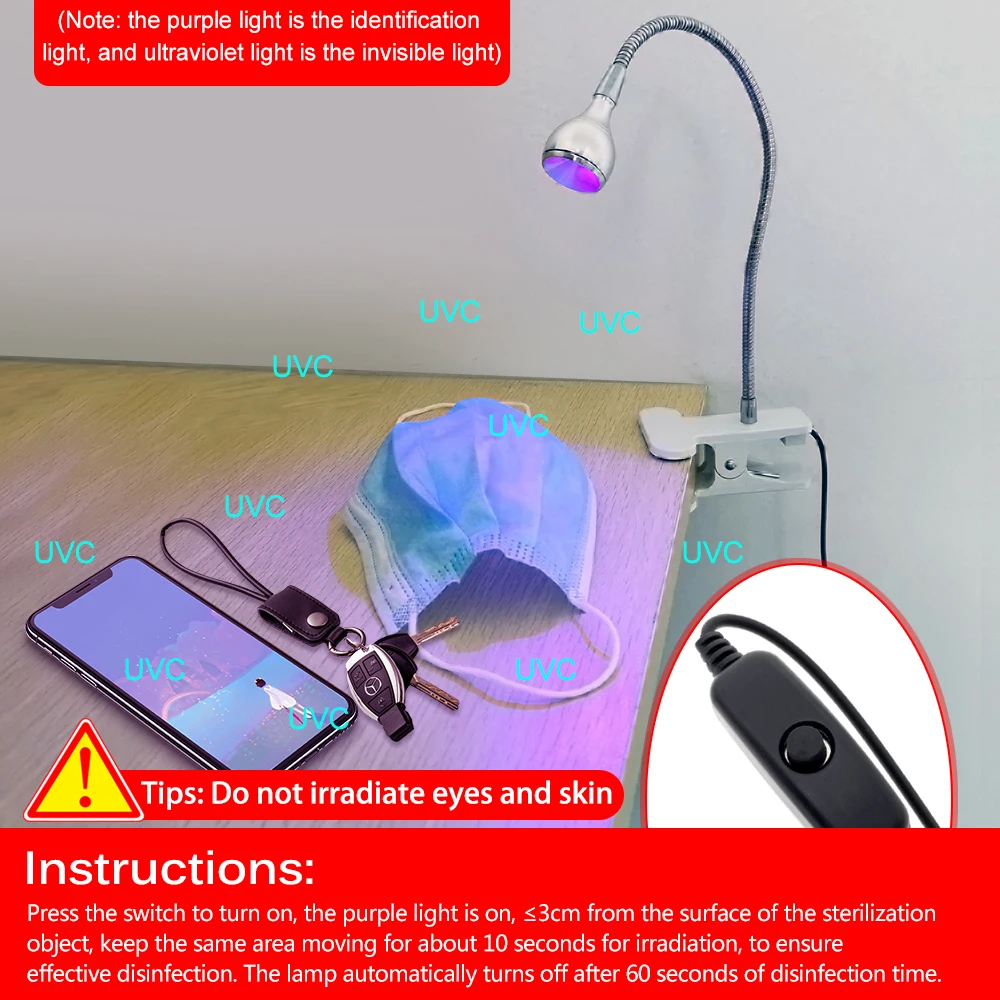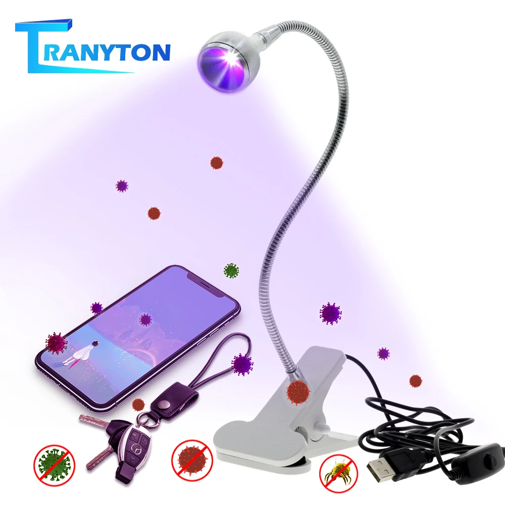 Бактерицидная лампа UVC, регулируемый дезинфекционный светильник для посылок, масок, книг, клещей с чистым воздухом и держателем на зажиме, USB, 5 В